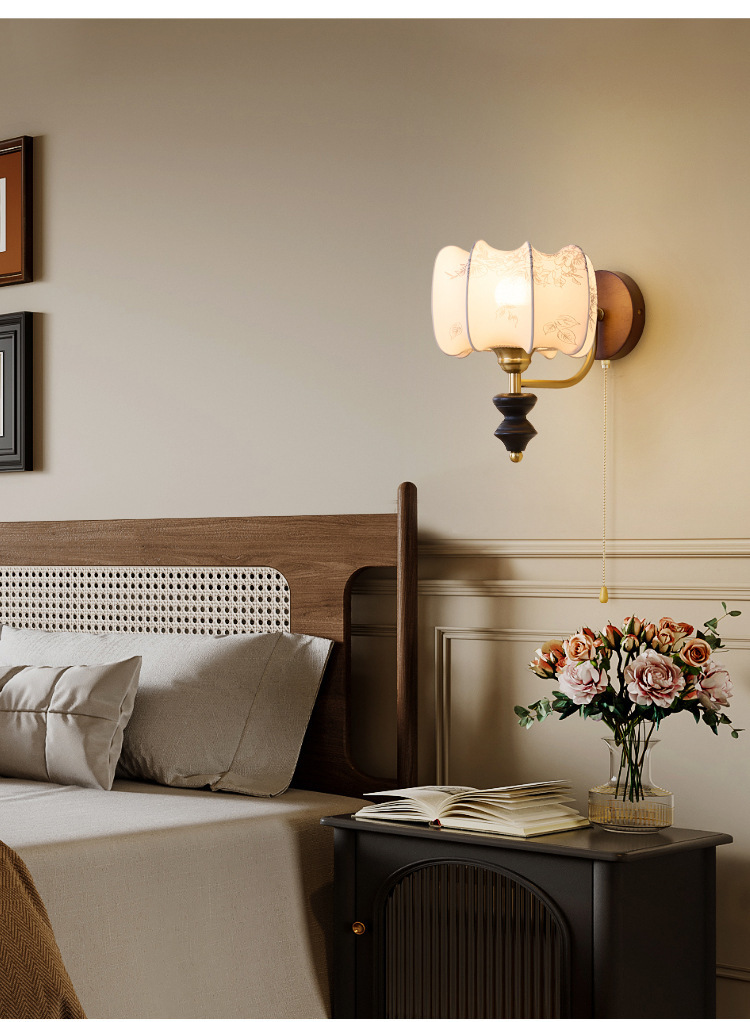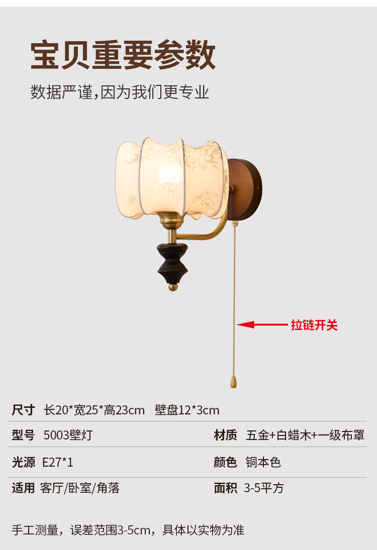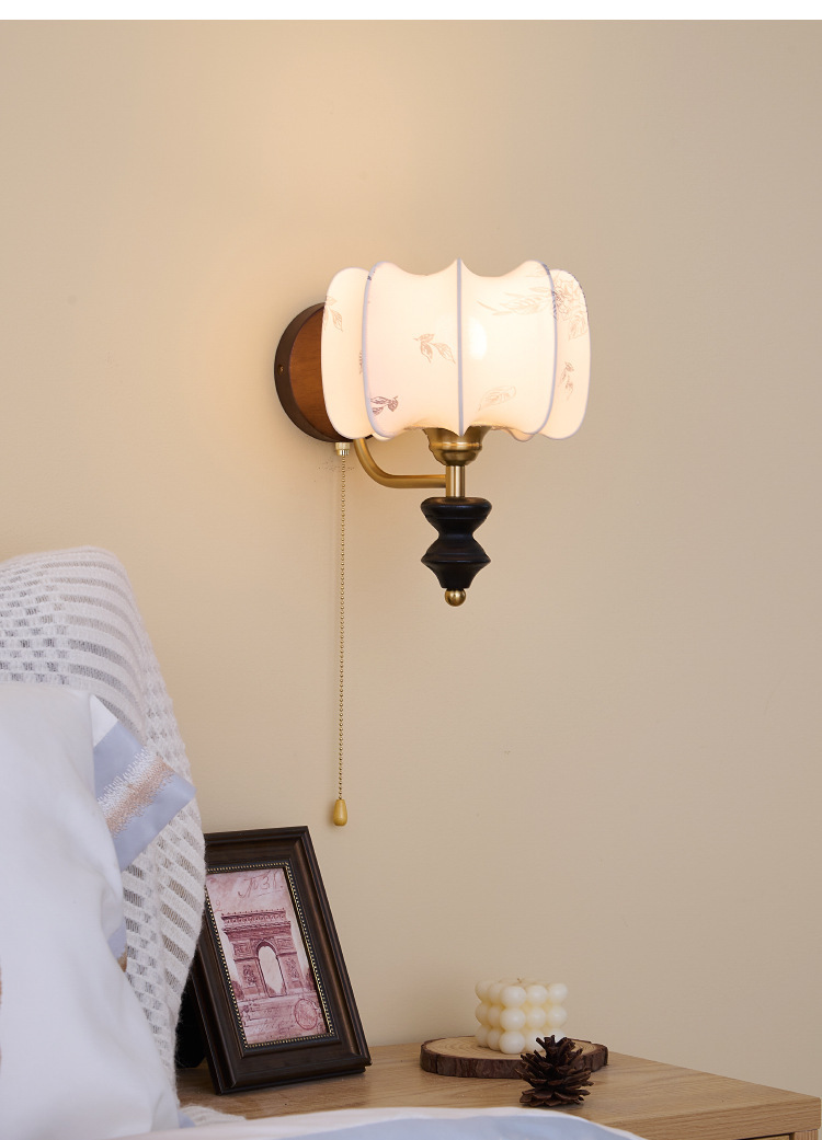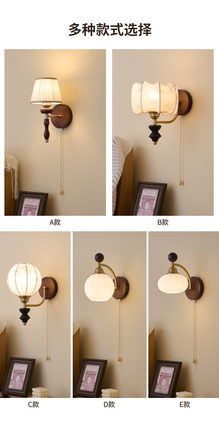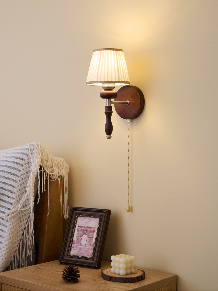 조임 끈 스위치가있는 미국 복고풍 벽 램프 침실 머리맡 램프 중세 스타일 거실 복도 통로 입구 장식 램프