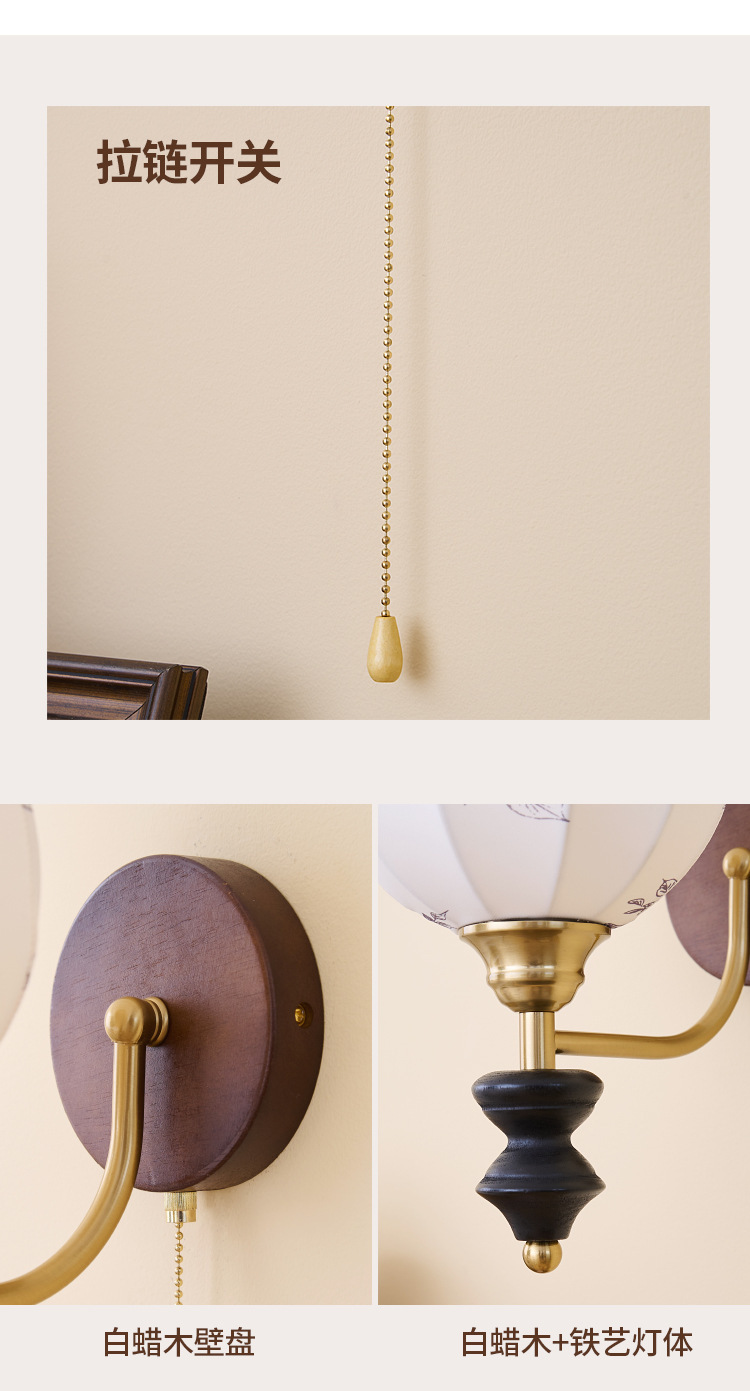 조임 끈 스위치가있는 미국 복고풍 벽 램프 침실 머리맡 램프 중세 스타일 거실 복도 통로 입구 장식 램프스토어 가기