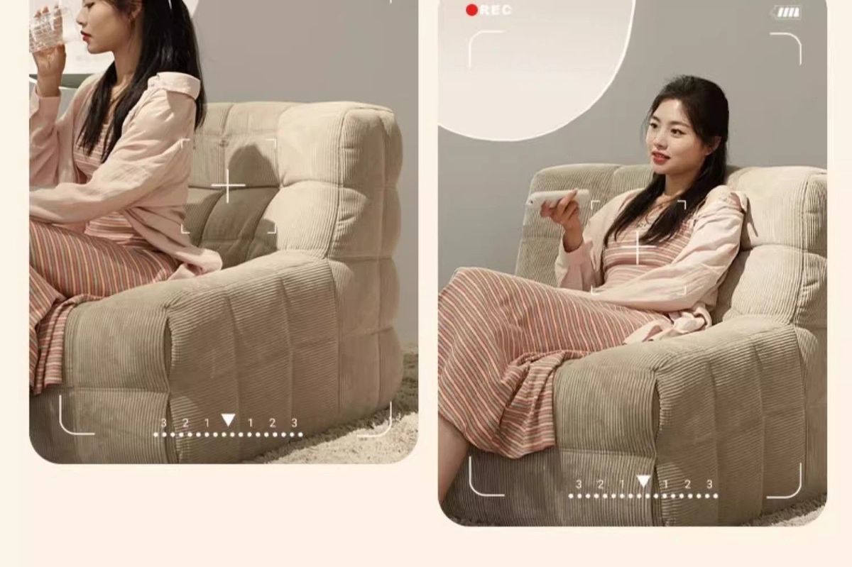 [핫 스타일] 와플 게으른 소파 복고풍 사각형 레저 소파 발코니 거실 침실 싱글 소파스토어 가기
