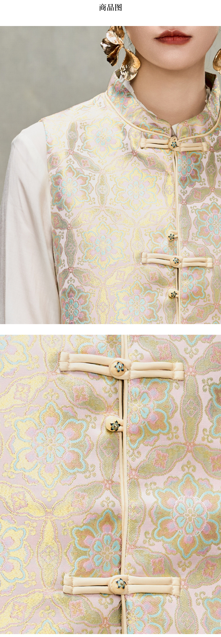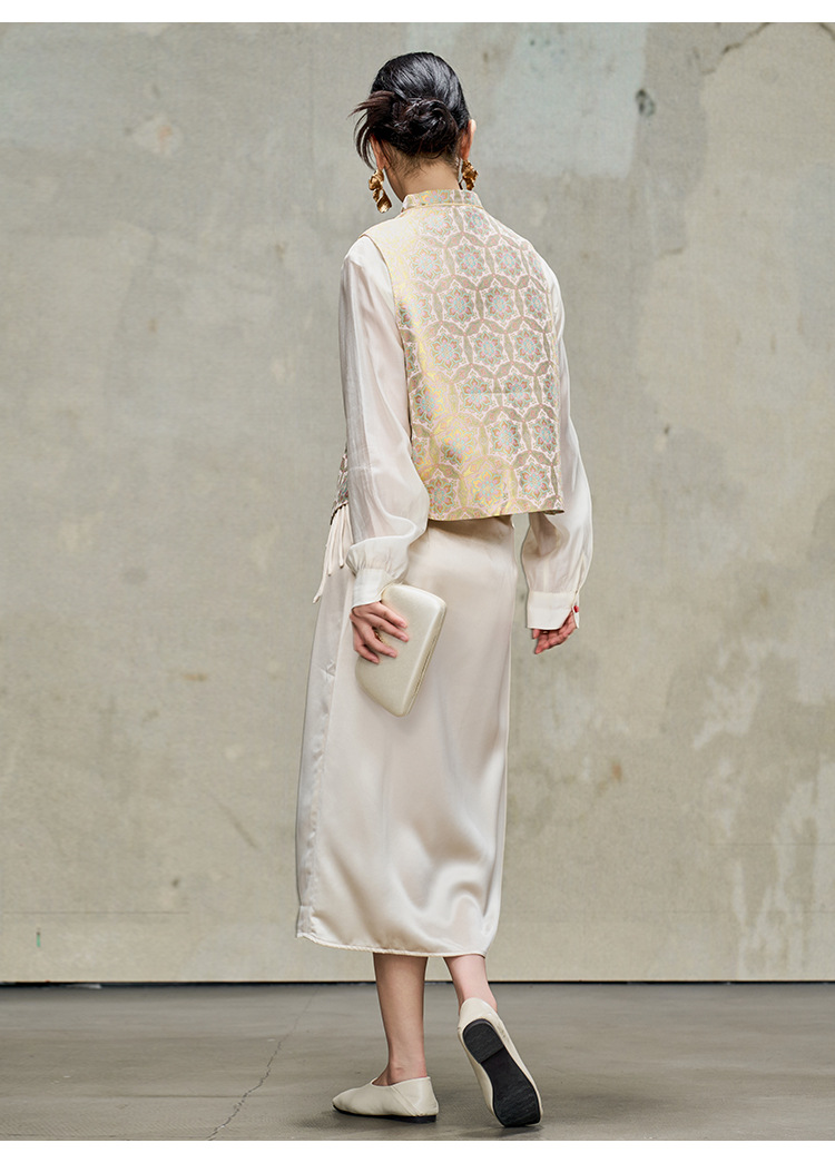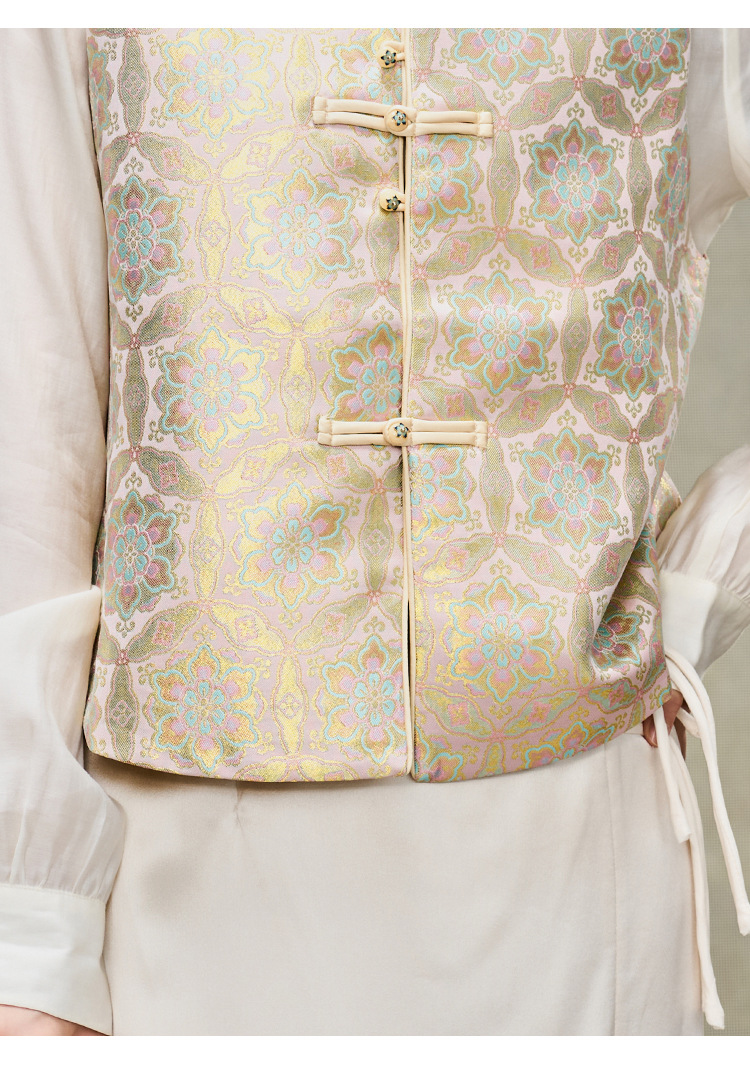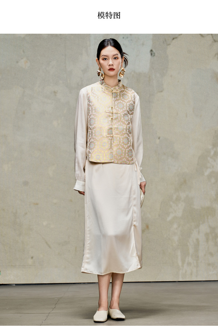 여성을위한 중국 스타일 실크 골드 조끼 2025 새로운 중국 스타일 뽕나무 실크 자카드 Hanfu Song Brocade 탑 양복 조끼