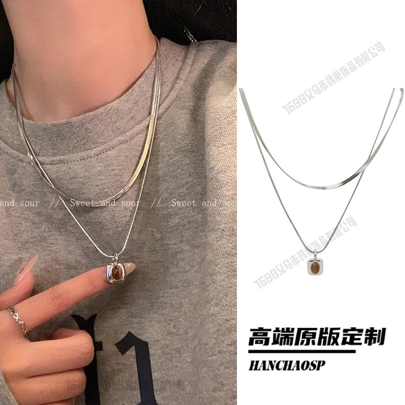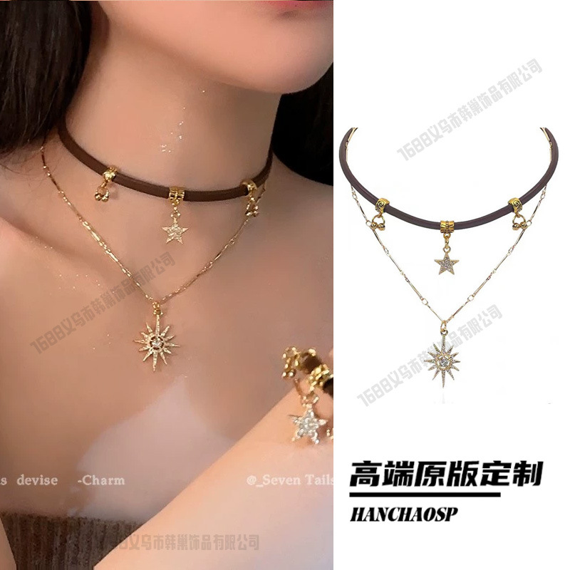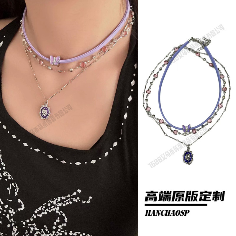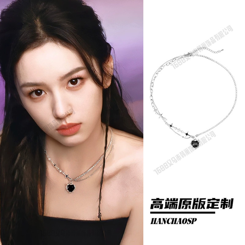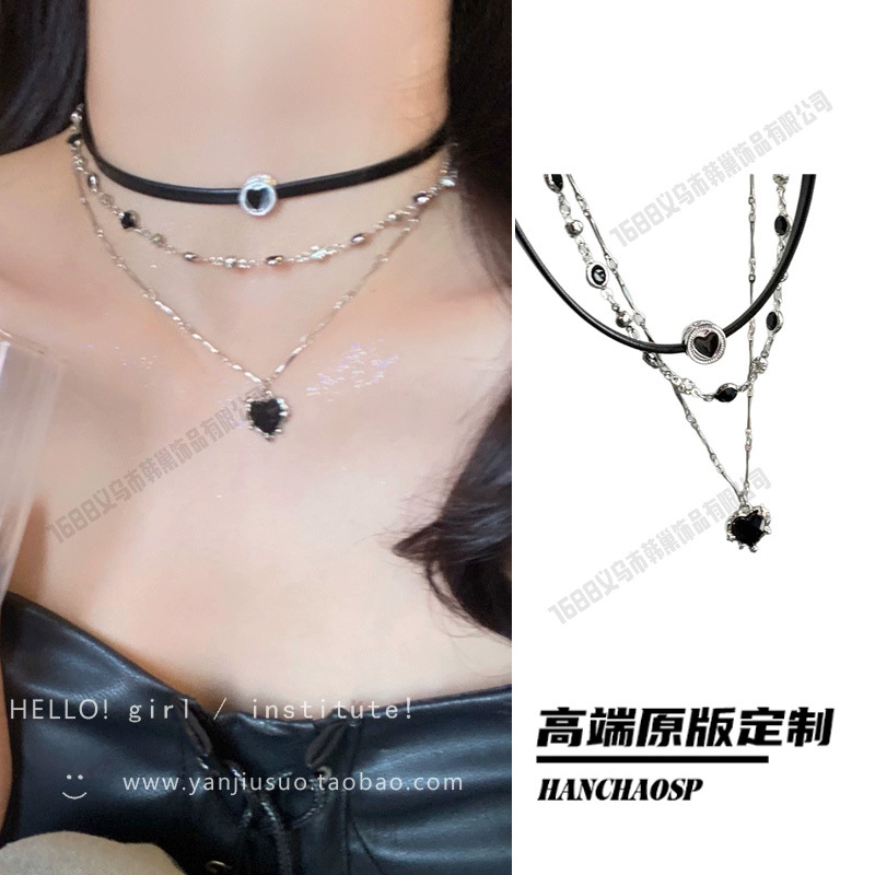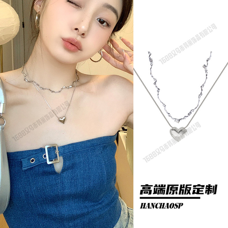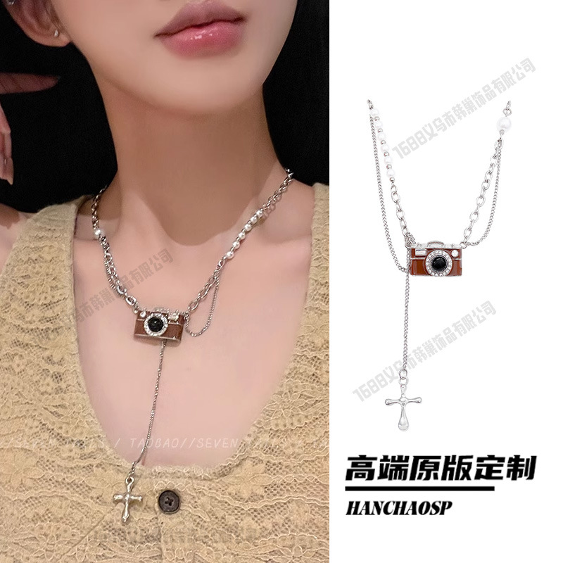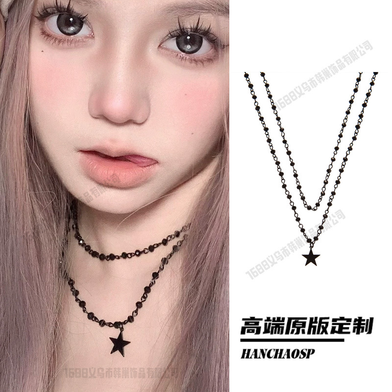 레트로 핫걸 크로스 목걸이, 달콤하고 시원한 스타일의 더블 레이어 쌓인 쇄골 체인, 여성용 하이엔드 초커 목걸이 액세서리스토어 가기
