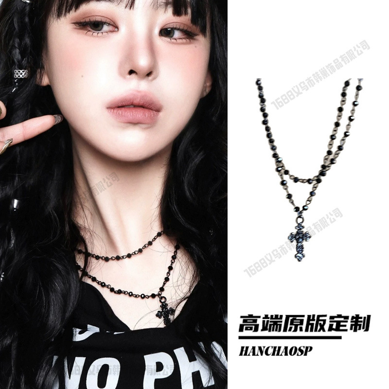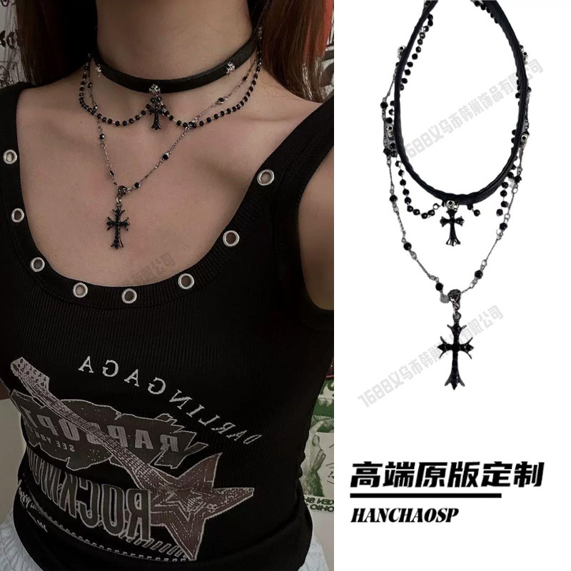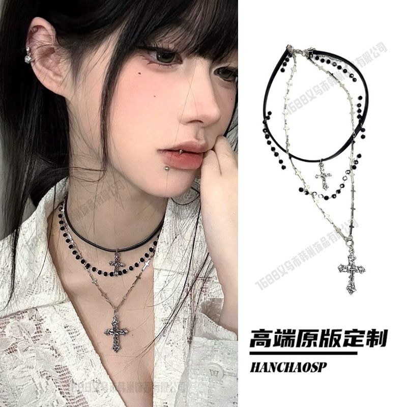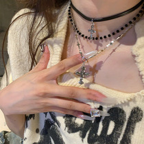 欧美朋克多层choker十字架项链女小众轻奢y2k项饰饰品锁骨链配饰