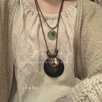 古风新中式禅意项链小众双层复古民族风羽毛吊坠蜡线项链女长款棉