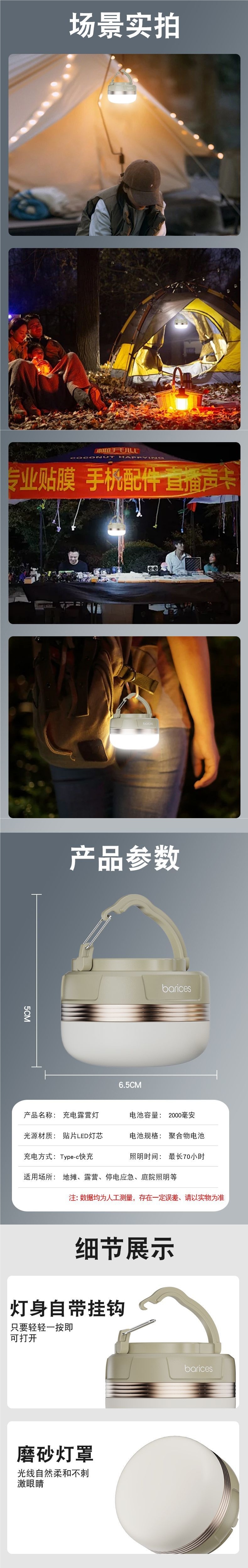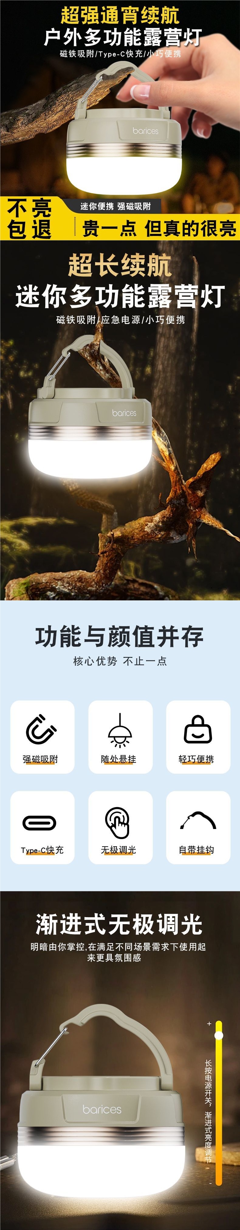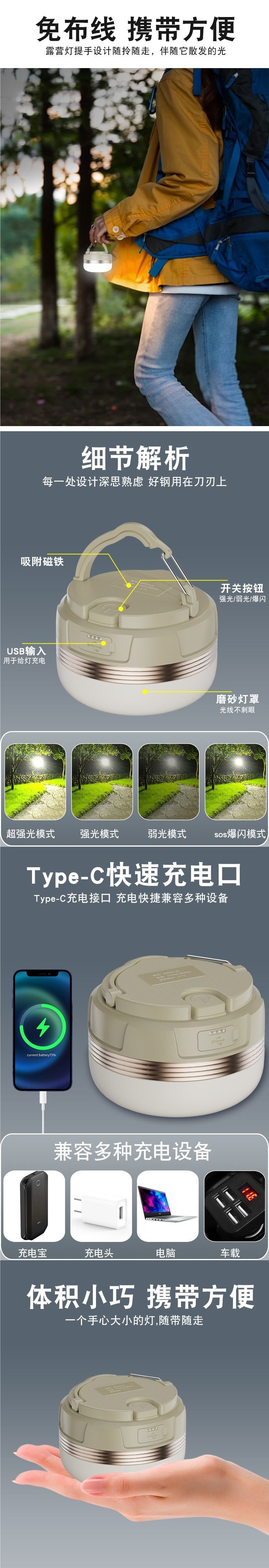 캠핑 조명, 매우 긴 배터리 수명, 매우 밝은 미니 텐트 캐노피 분위기, 휴대용 야외 캠핑 충전식 조명