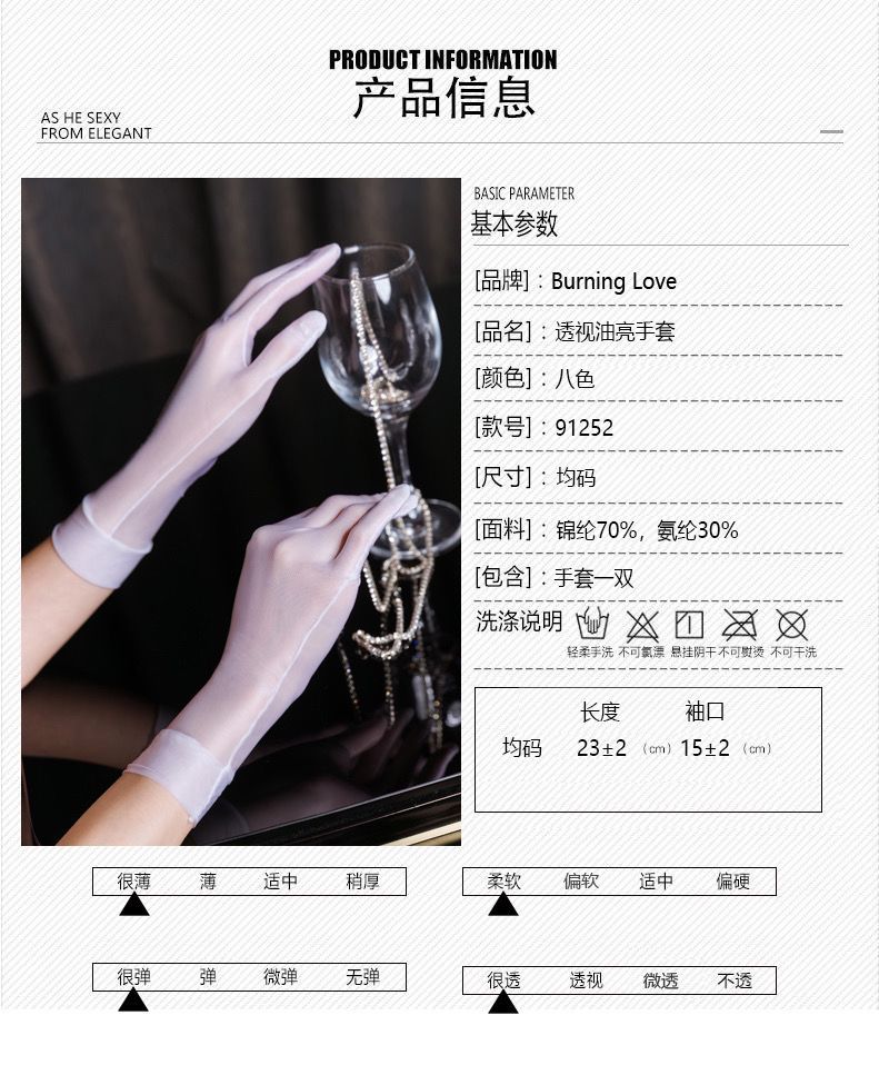 둥근 빛 실크 Shesbin 광택 다섯 손가락 긴 장갑 실키 선 스크린 섹시한 여왕 신부 비행기 플러스 사이즈 남성과 여성