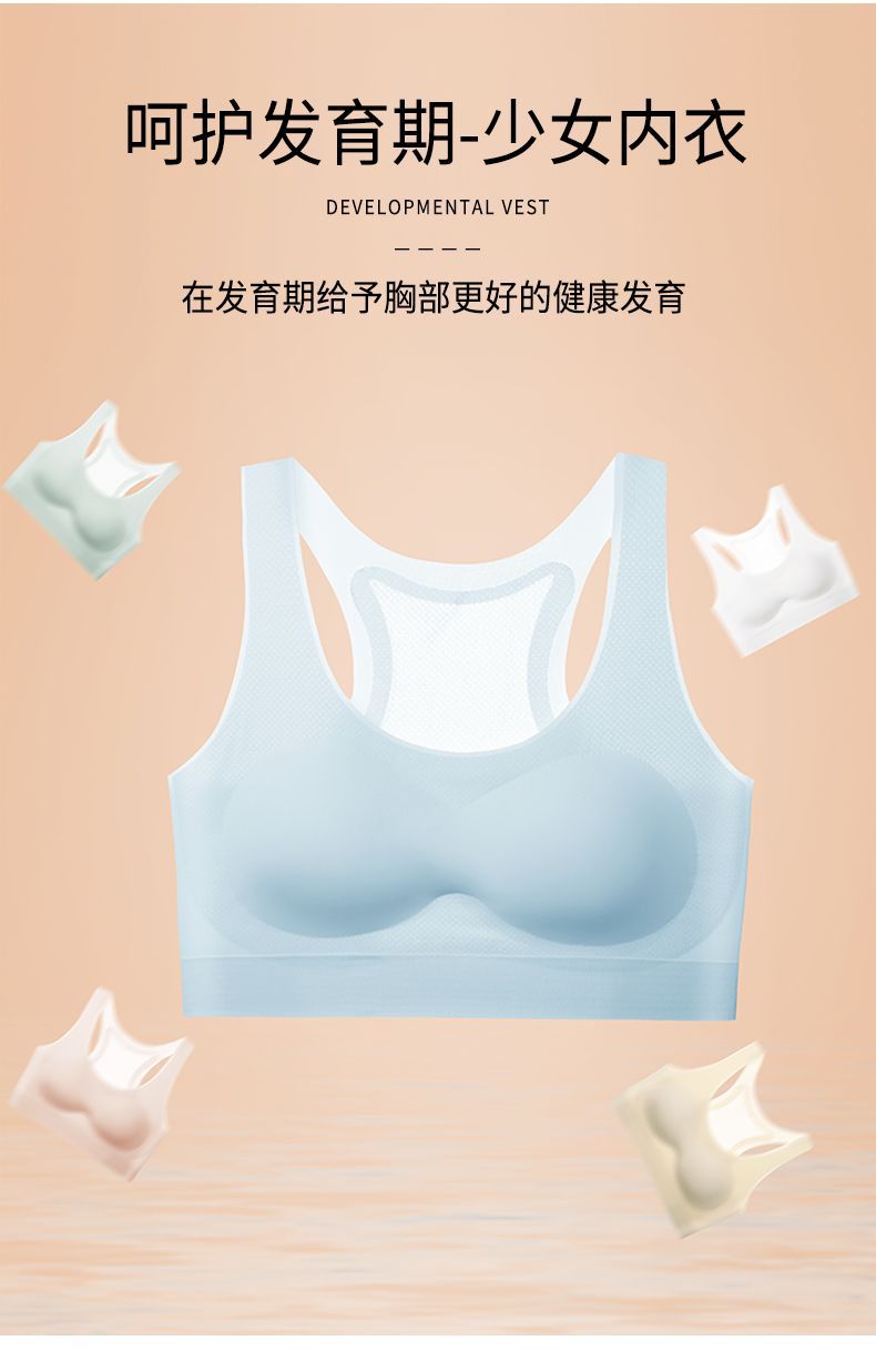 대외 무역 국경 간 인기 여아 속옷, 중학생 발달기 여아 심리스 브라, 얇고 편안한 스포츠 조끼스토어 가기
