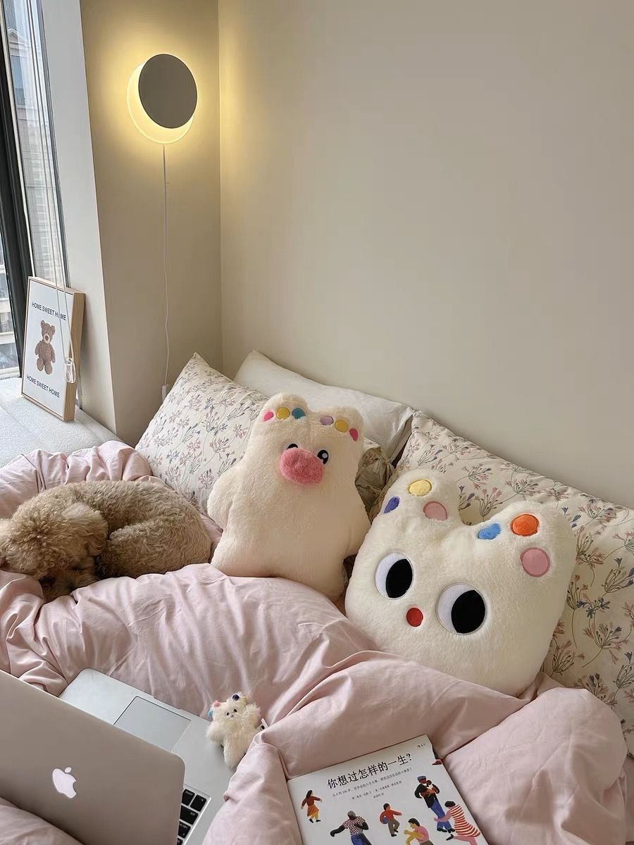 Ins 스타일 우유 푸푸 고양이 베개 곰 봉제 인형 귀여운 핑크 꽃 소파 침실 베개 생일 선물스토어 가기