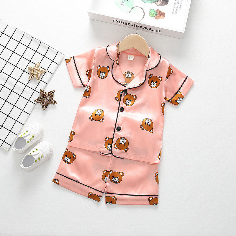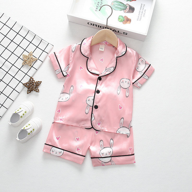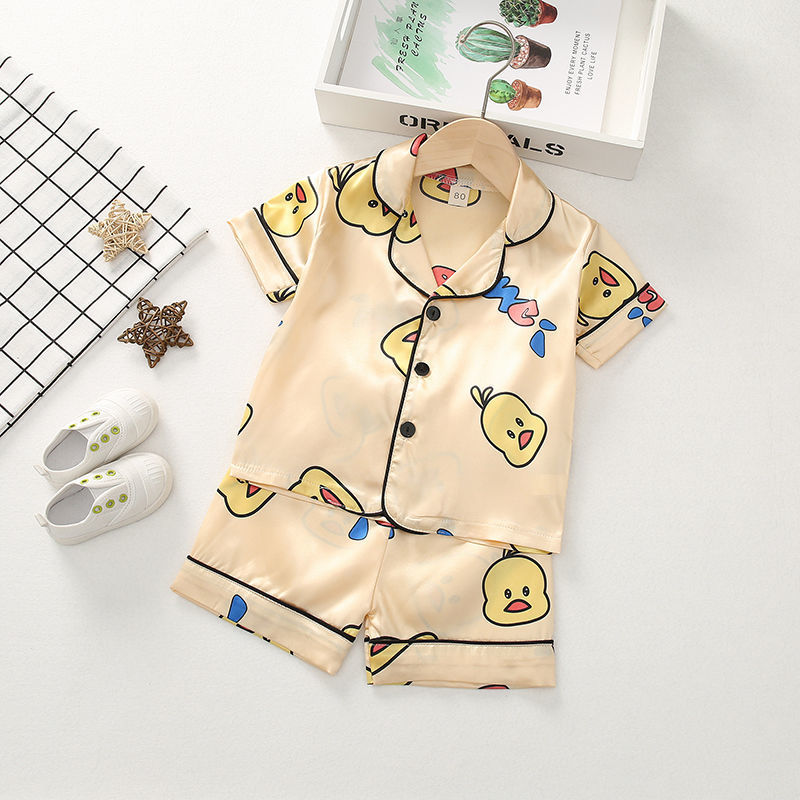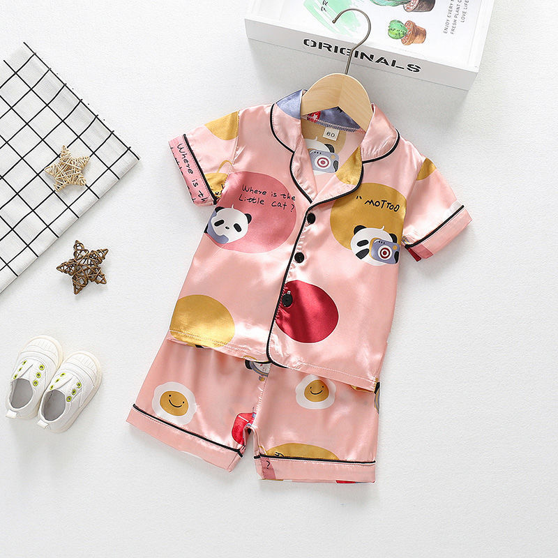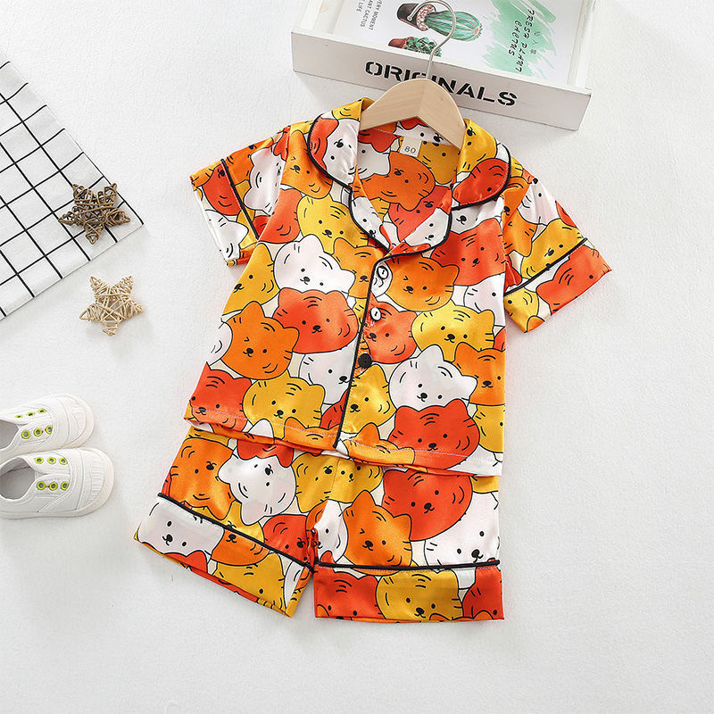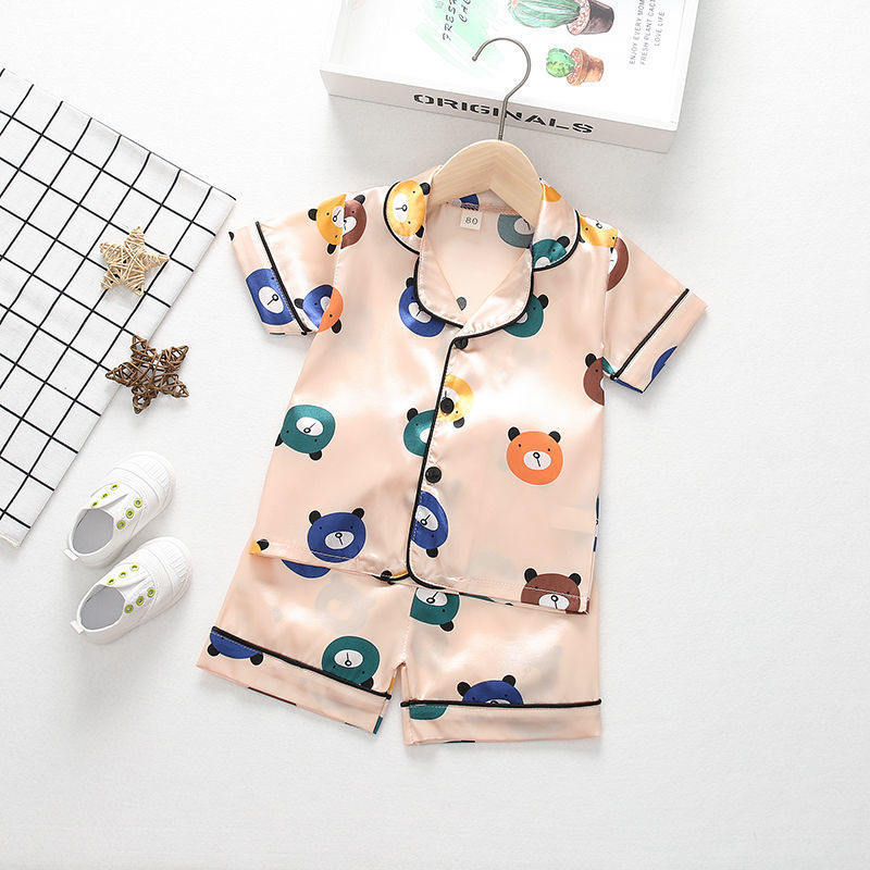 어린이 잠옷 세트 여름 얼음 실크 얇은 아기 소녀 가정 의류 소년 시뮬레이션 실크 반팔 투피스 세트스토어 가기