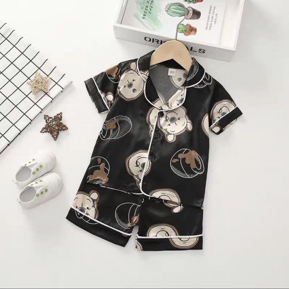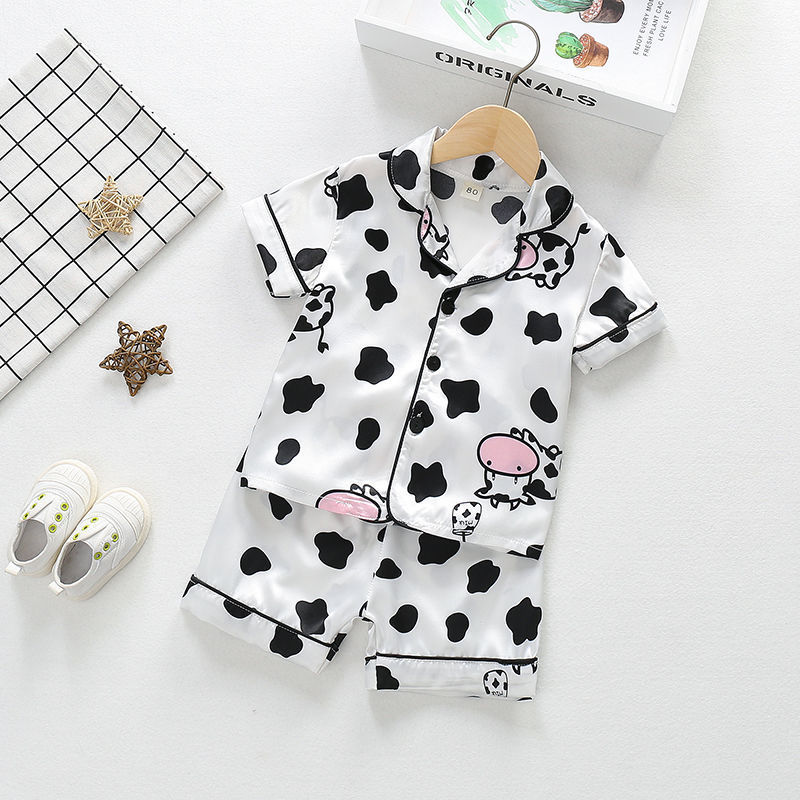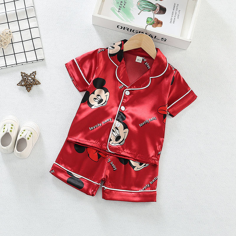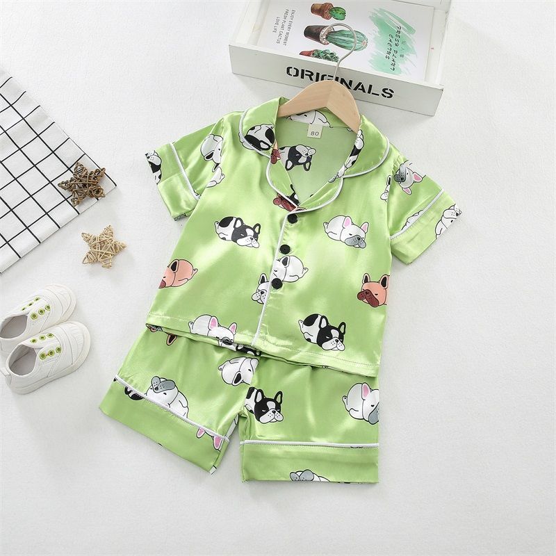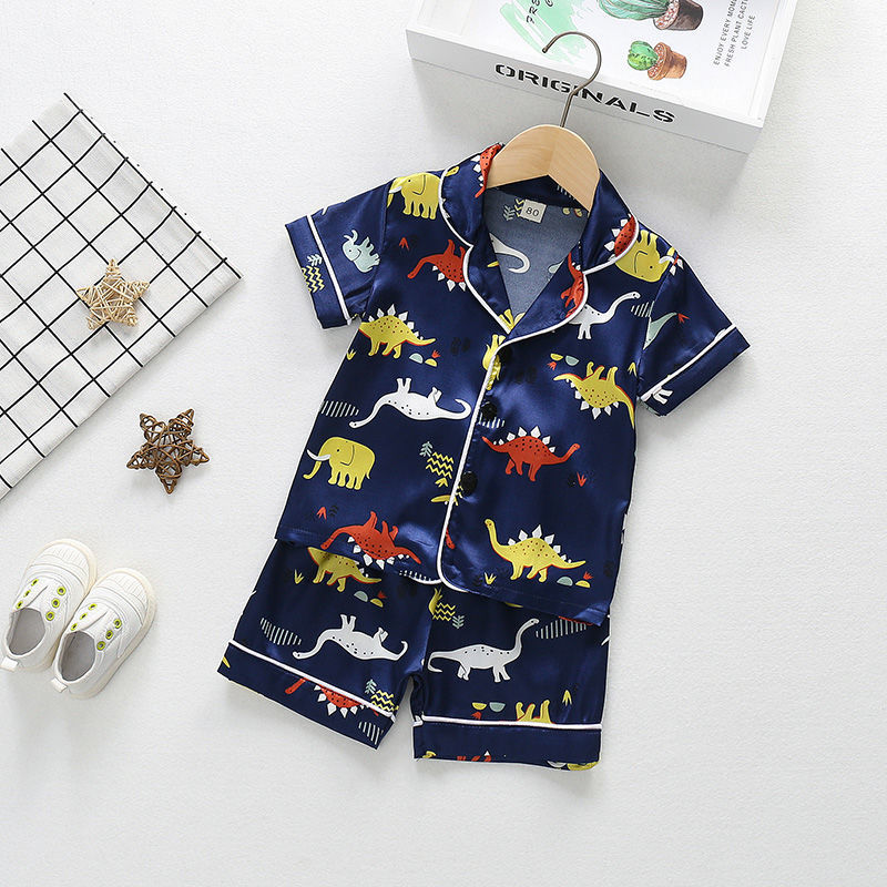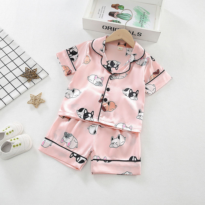 어린이 잠옷 세트 여름 얼음 실크 얇은 아기 소녀 가정 의류 소년 시뮬레이션 실크 반팔 투피스 세트스토어 가기