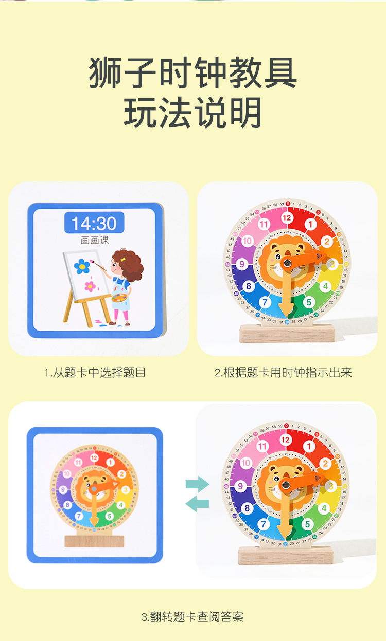 어린 아이들의 나무 시계 교육 보조 디지털 인식 시간 인식 시계 학습 조기 교육 교육 유치원 장난감스토어 가기
