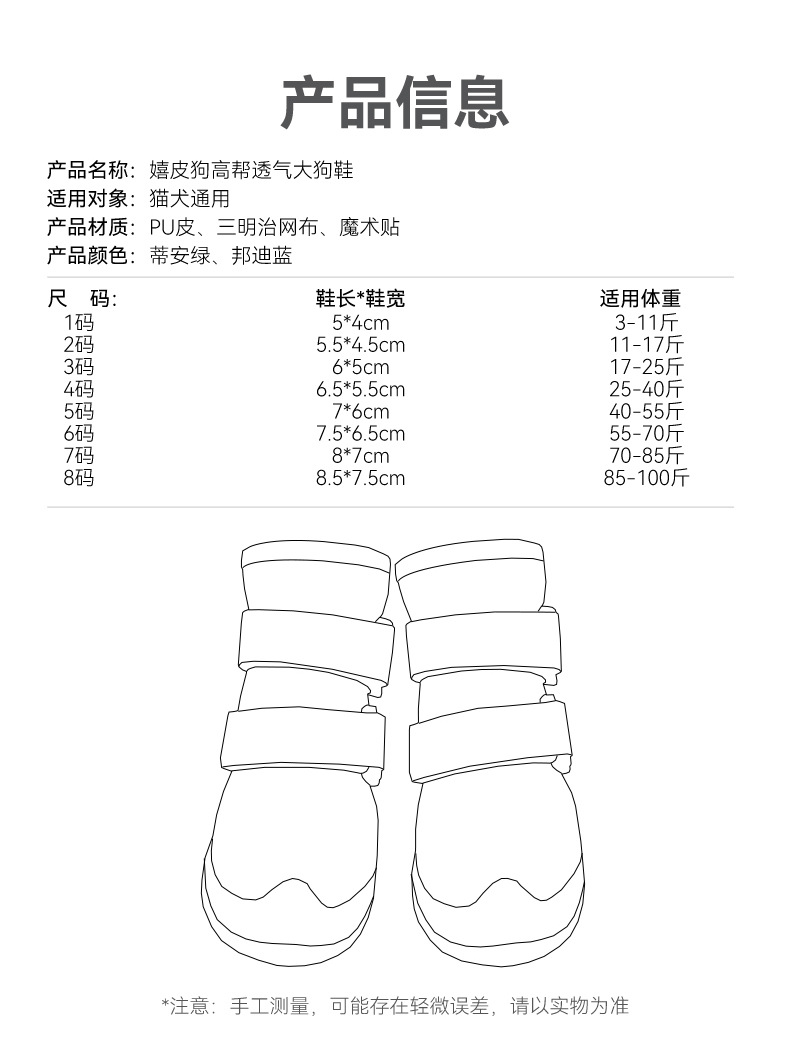 대형견을 위한 하이탑 통기성 대형견 신발, 골든 리트리버 래브라도, 사계절 경량, 더러움 방지 및 내마모성 애완견 대형견 신발