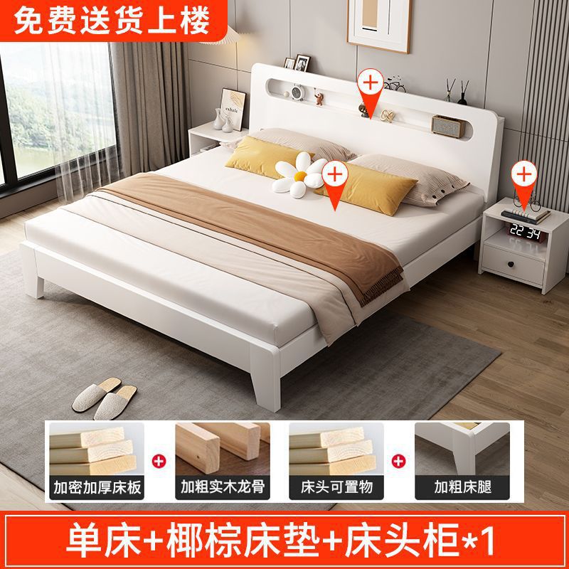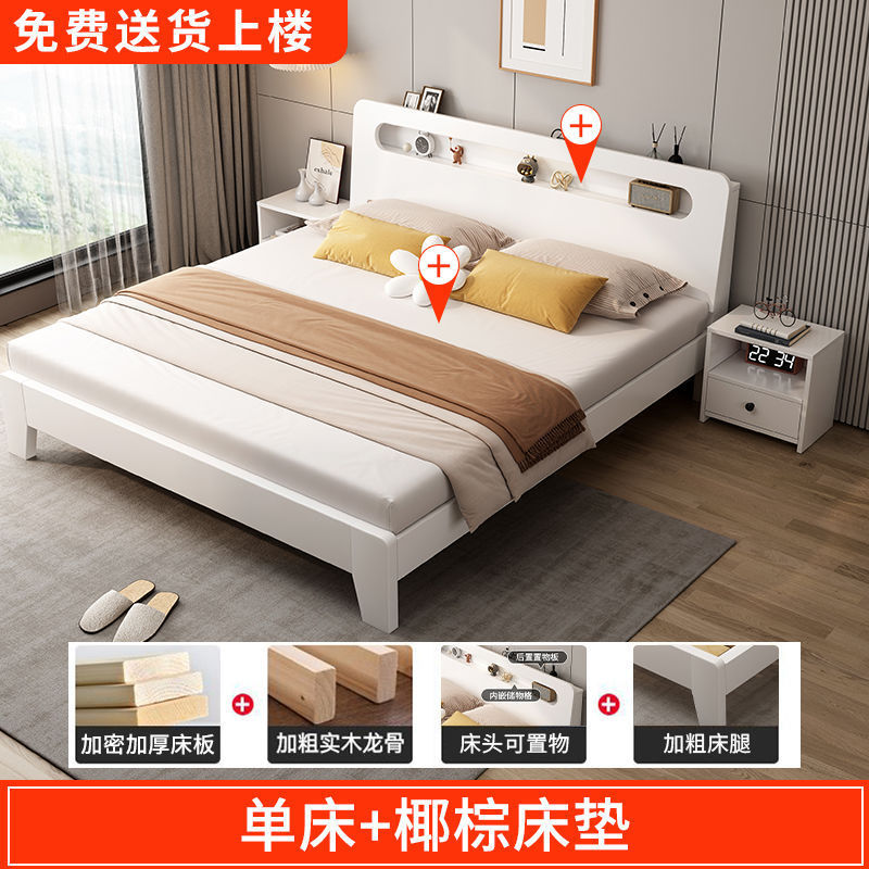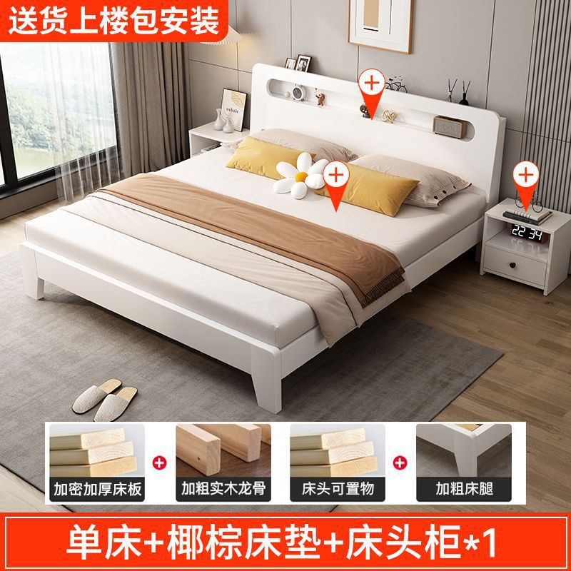 • 두꺼운 크림 화이트 침대 + 코코넛 야자 매트리스 + 캐비닛 1개, 설치 포함