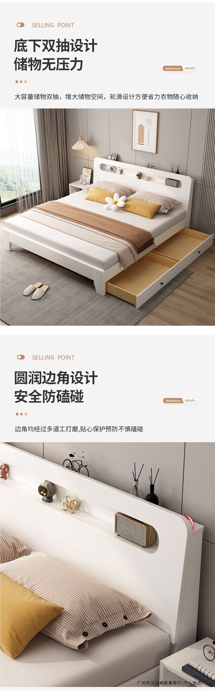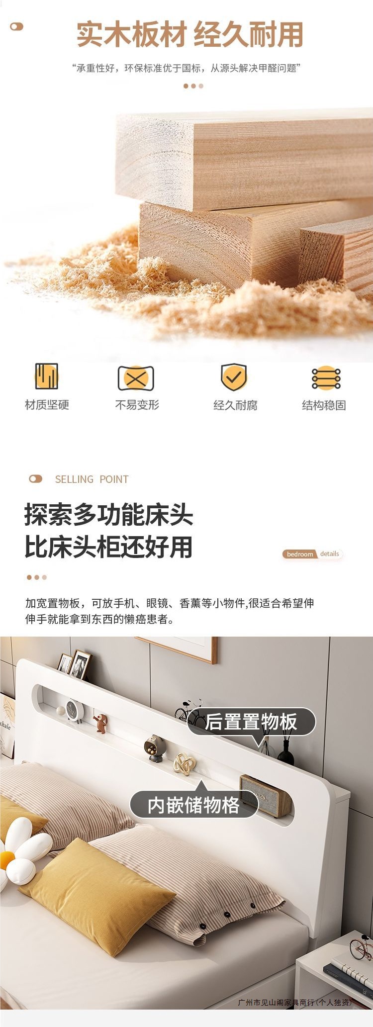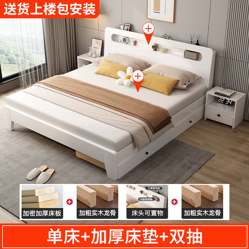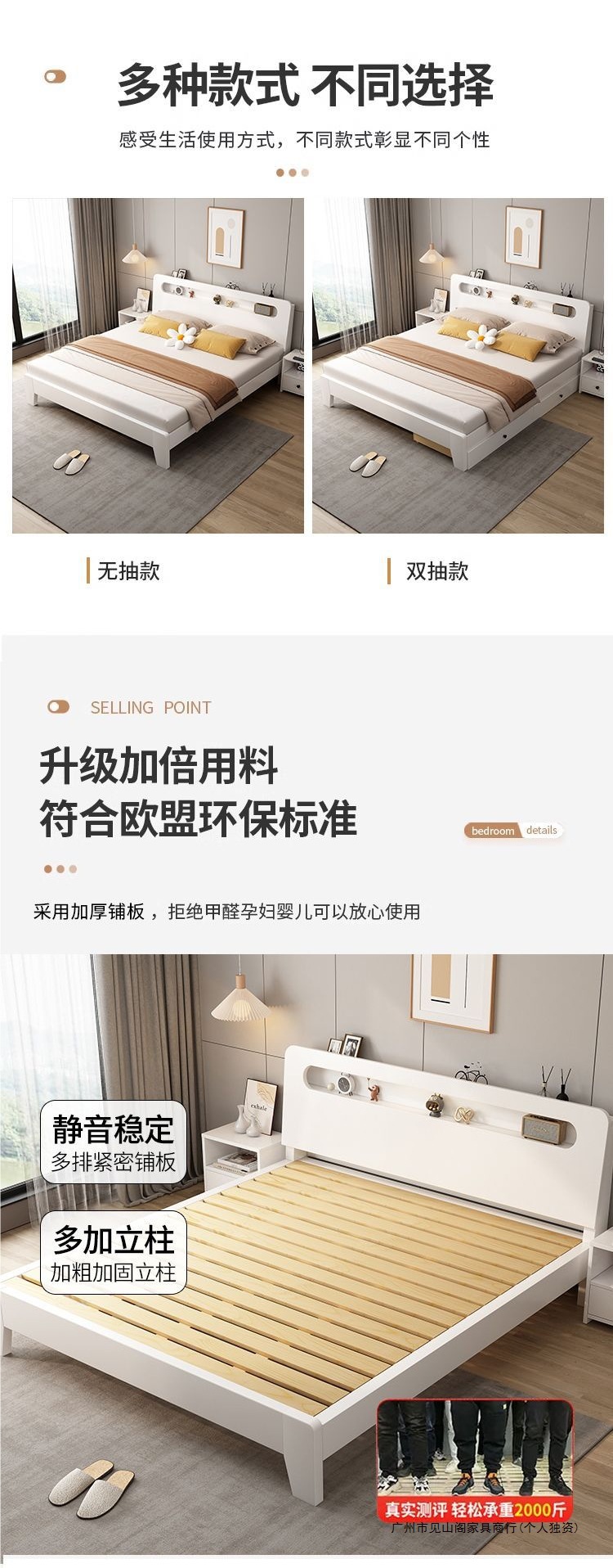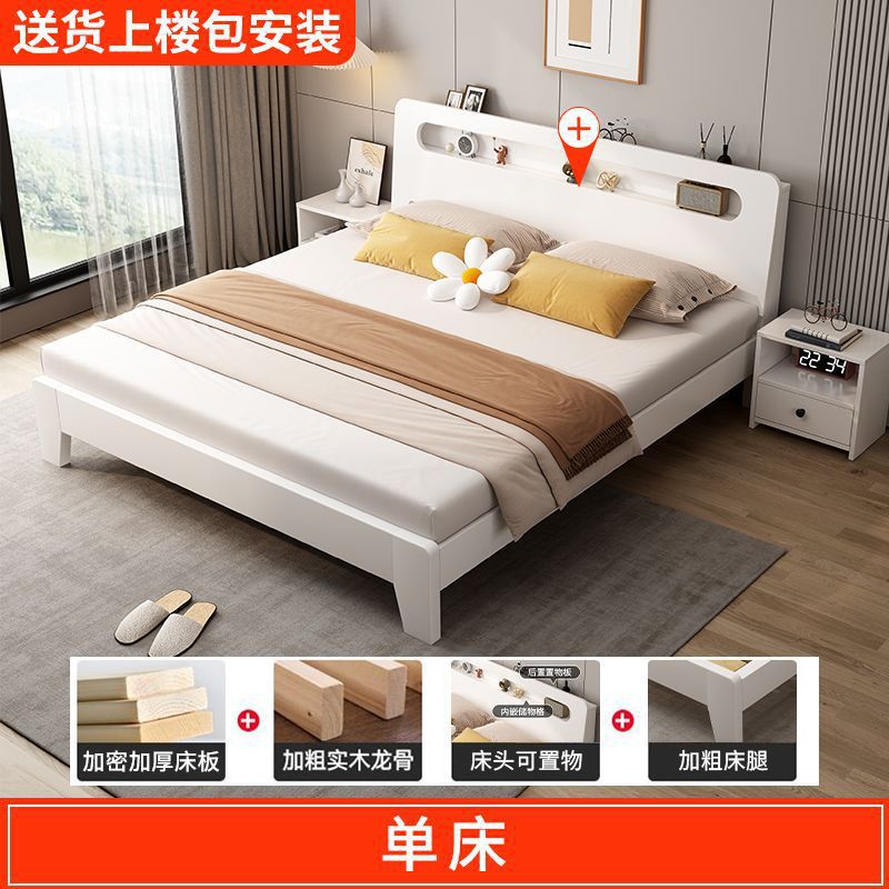 뜨거운 판매 단단한 나무 침대 크림 스타일 침대 1.5m 홈 마스터 침실 대형 침대 1.8m 싱글 더블 침대 임대 특별 가격스토어 가기