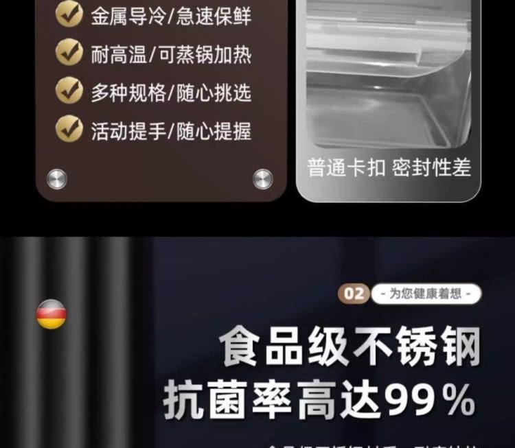 뚜껑이 있는 두꺼운 316 스테인레스 스틸 크리스퍼, 고온 저항 용량 밀봉 휴대용 냉장고 보관 상자, 범용스토어 가기