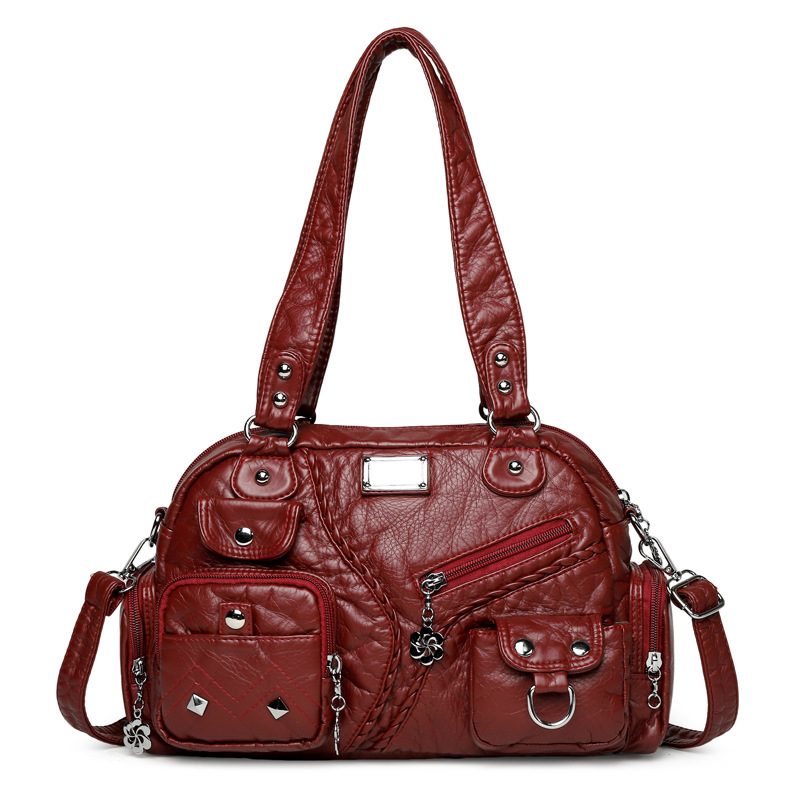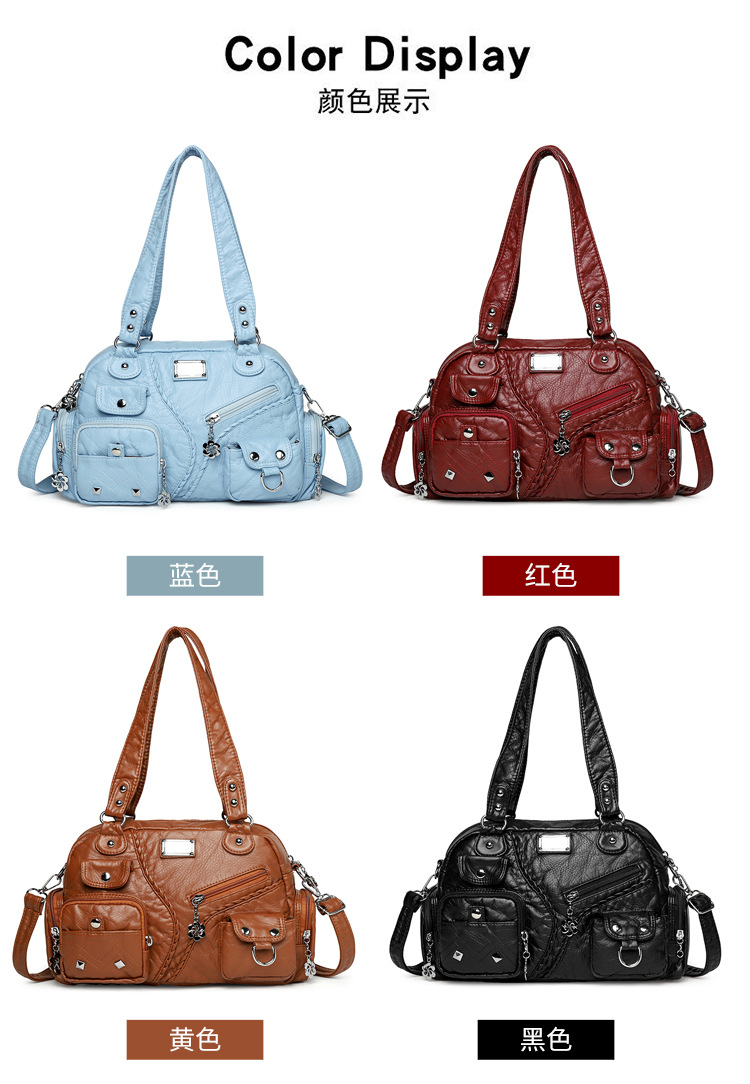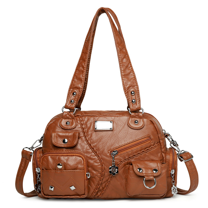여성용 크로스보더 테무 특별 제품, 멀티 포켓이 있는 인기 워싱 가죽 토트백, 디스트레스드 레트로 크로스바디 백, 숄더백