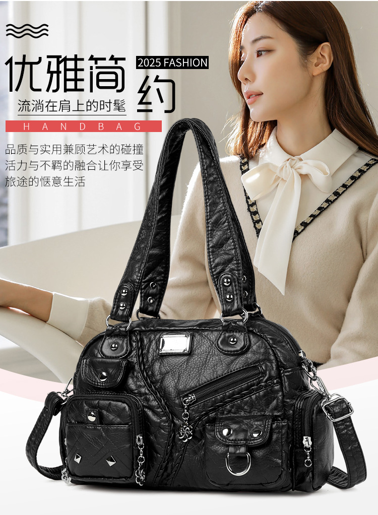 여성용 크로스보더 테무 특별 제품, 멀티 포켓이 있는 인기 워싱 가죽 토트백, 디스트레스드 레트로 크로스바디 백, 숄더백스토어 가기
