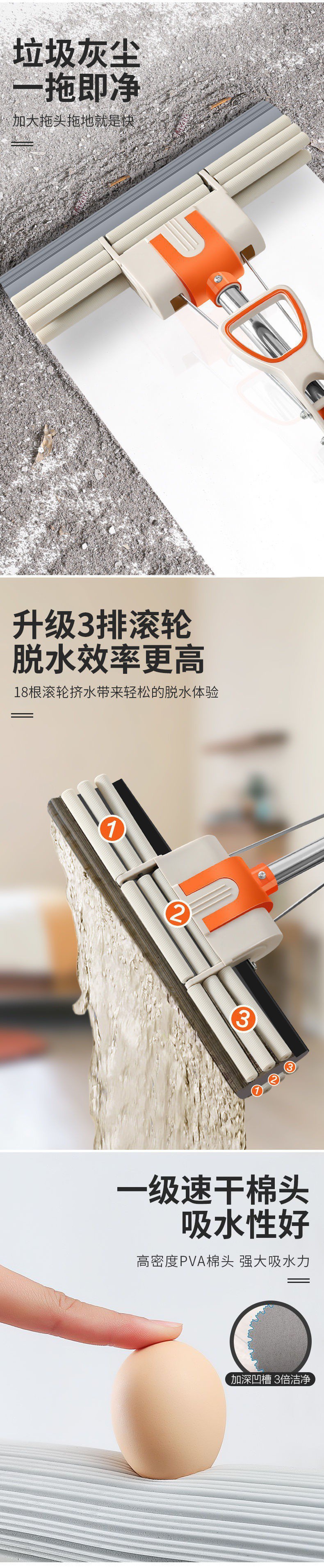 스펀지 걸레, 콜로디온 물 압착 걸레 롤러, 초흡수성, 손세탁 가능, 가정용 대형, 내구성이 뛰어나고 튼튼한 걸레
