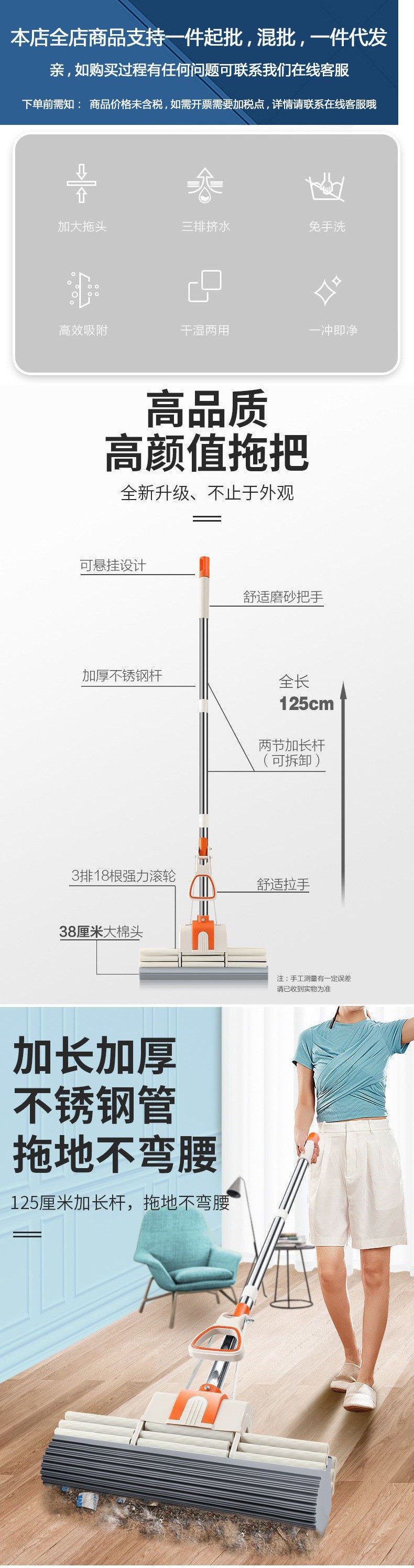 스펀지 걸레, 콜로디온 물 압착 걸레 롤러, 초흡수성, 손세탁 가능, 가정용 대형, 내구성이 뛰어나고 튼튼한 걸레스토어 가기