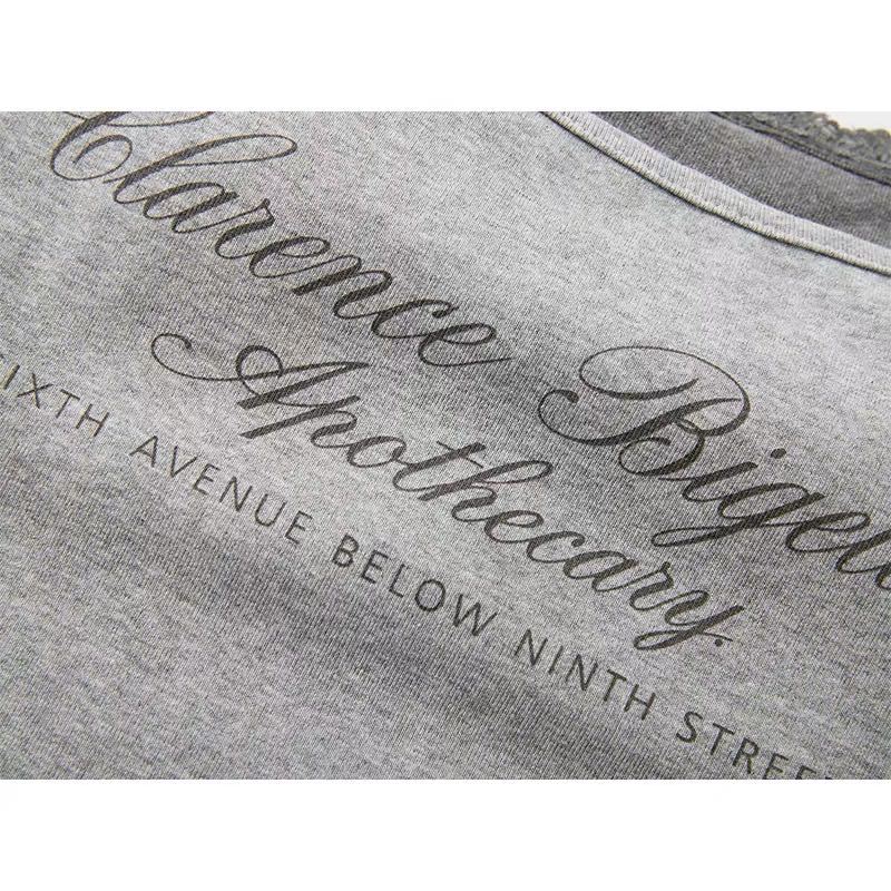 2025 새로운 문자 인쇄 대비 색상 레이스 업 홀터넥 캐미솔 여름 복고풍 디자인 가짜 투피스 탑스토어 가기