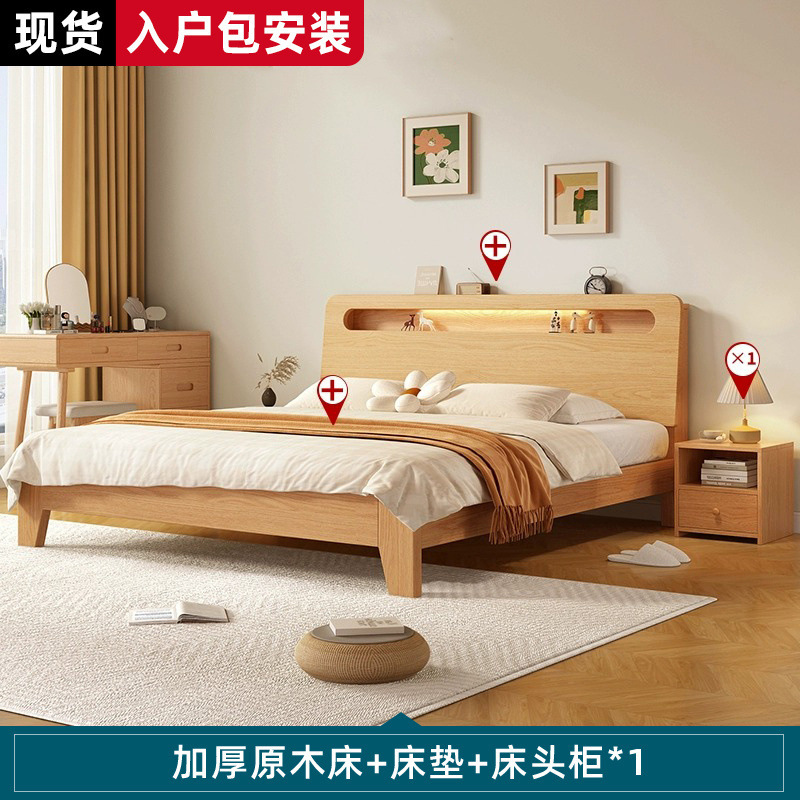 • 라이트 박스 두꺼운 원목 침대 + 침대 옆 탁자 1개(집으로 배송)