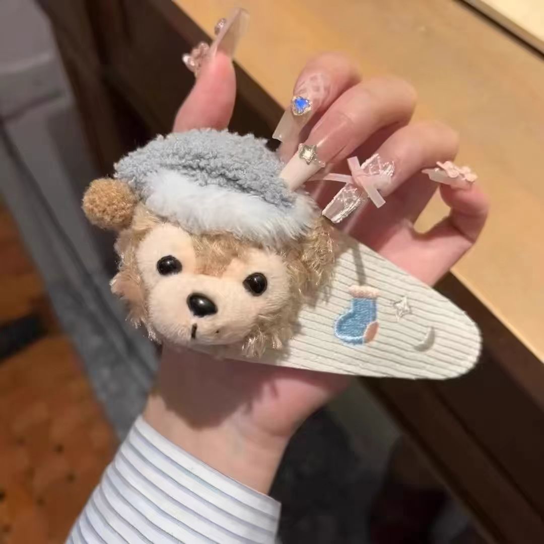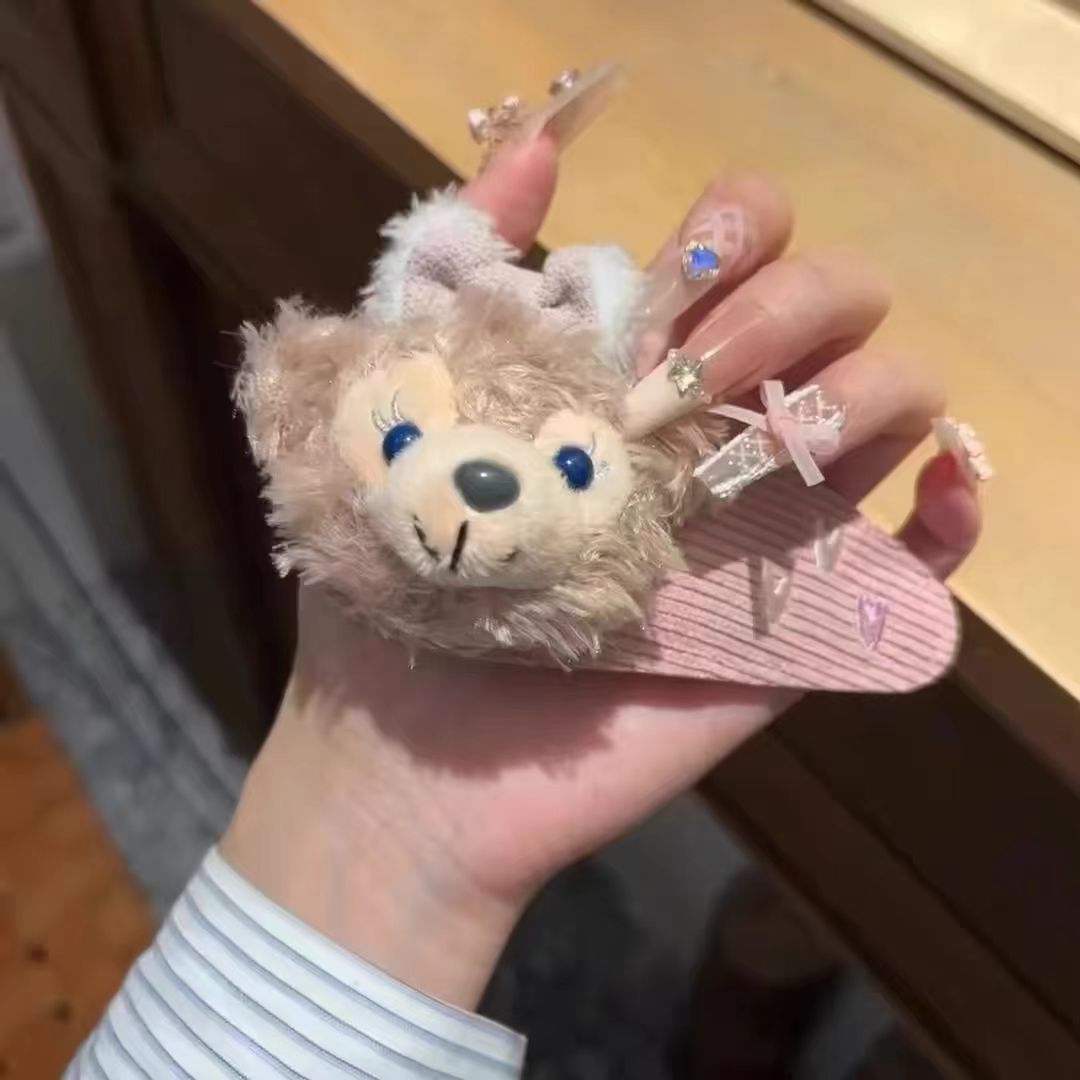 스타 루 토끼 귀여운 플러시 달콤한 안코라 레드 보우 헤어 클립 소녀 앞머리 만화 BB 헤어 액세서리
