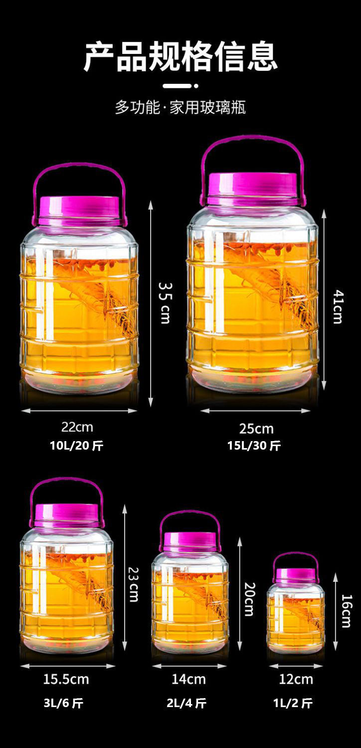 와인 유리병, 대형 두꺼운 밀봉 항아리, 과일 주류통, 피클 항아리, 베이베리 주류 용기, 빈 병, Mingwei