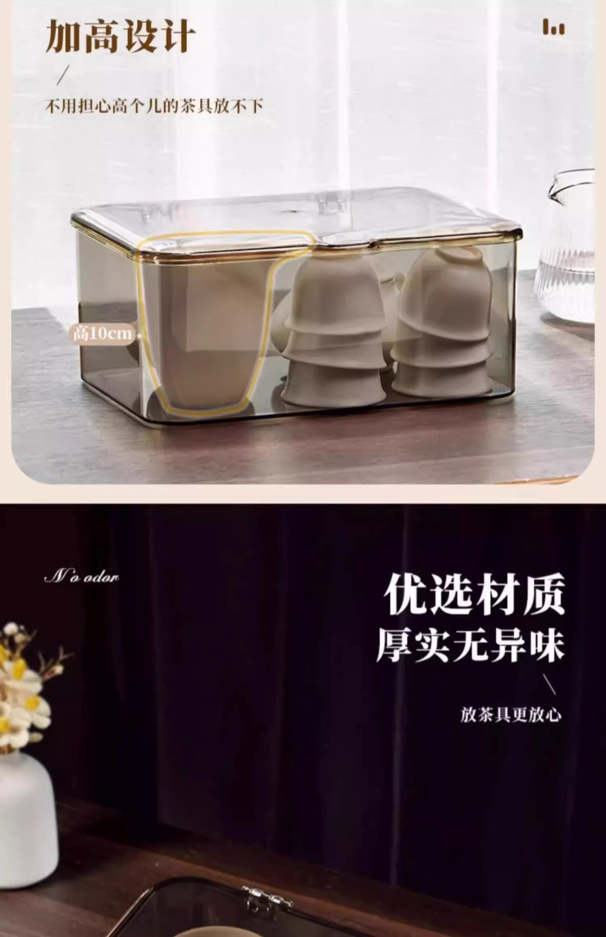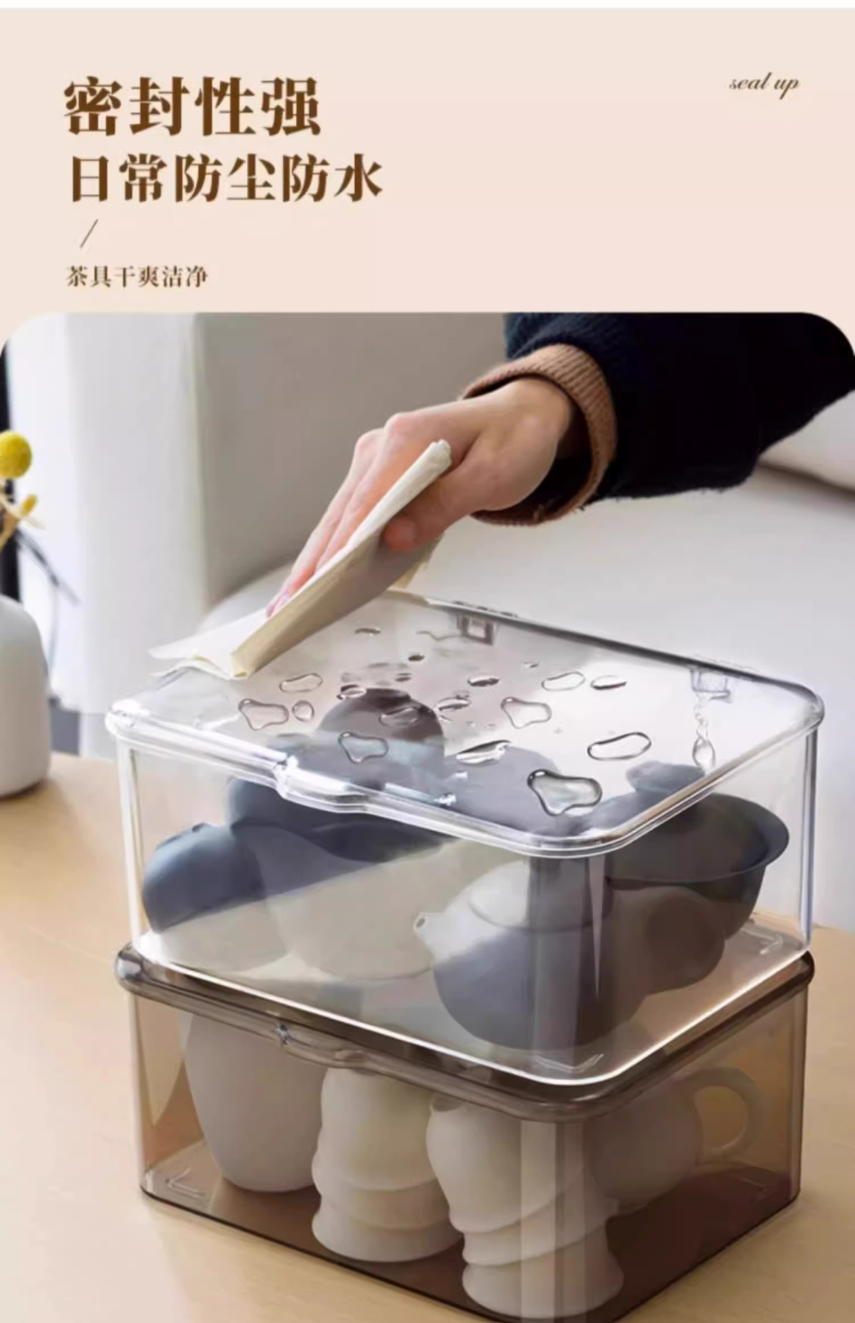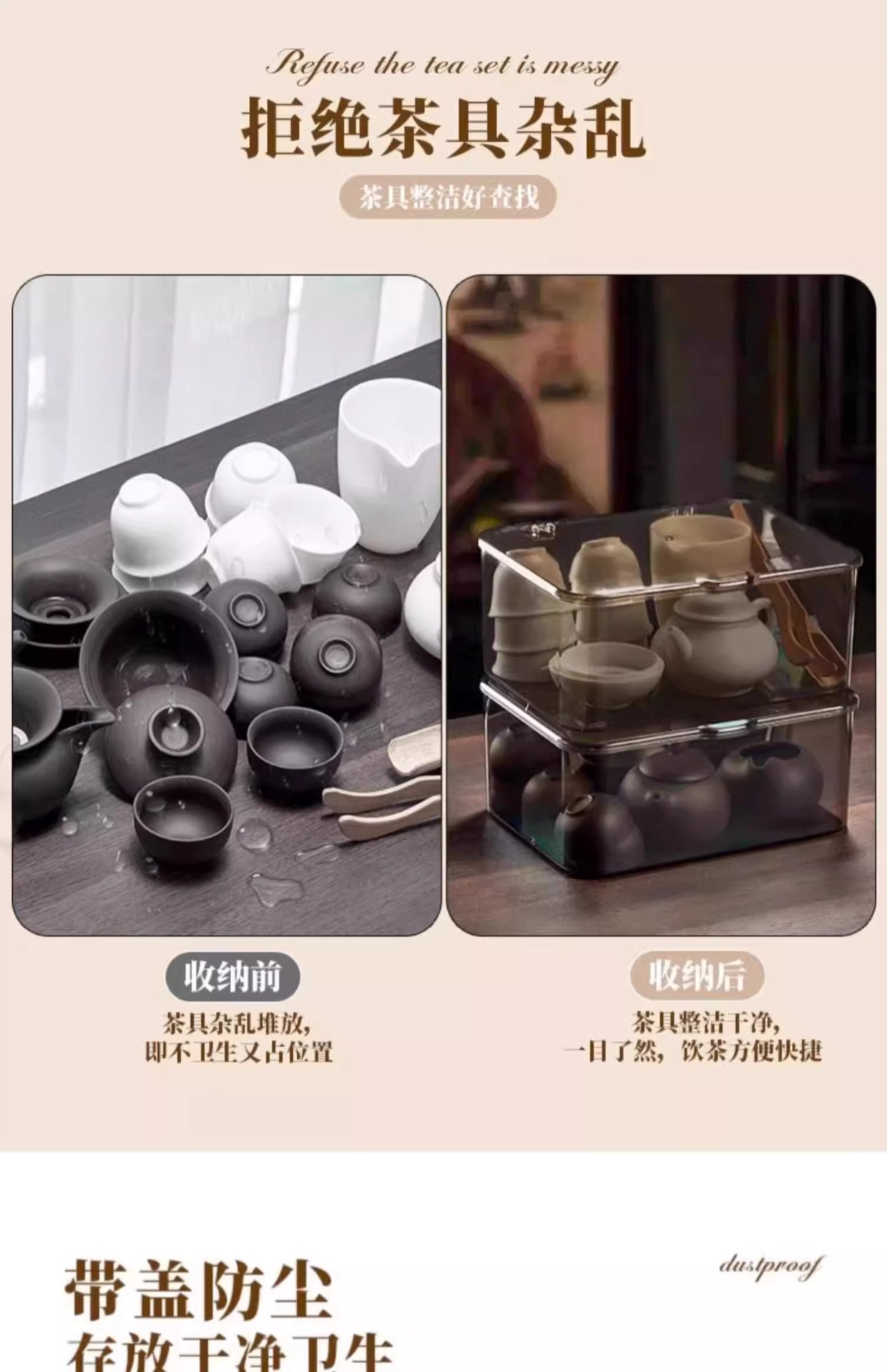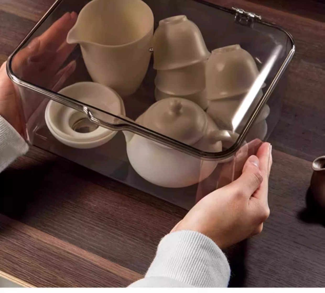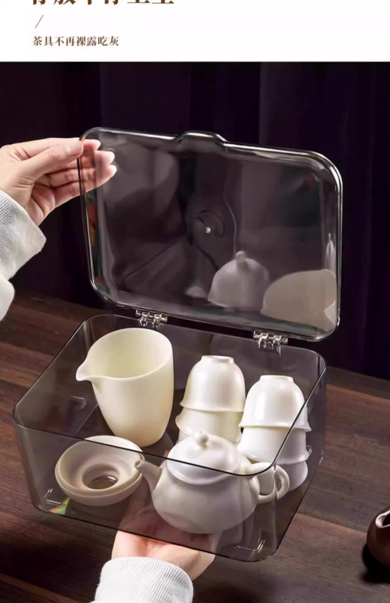 뚜껑이 있는 차 세트 보관 상자, 방진 투명 커피 테이블, 데스크탑 차 컵 정리 및 보관, 쿵푸 주전자 보관함