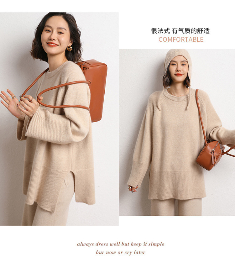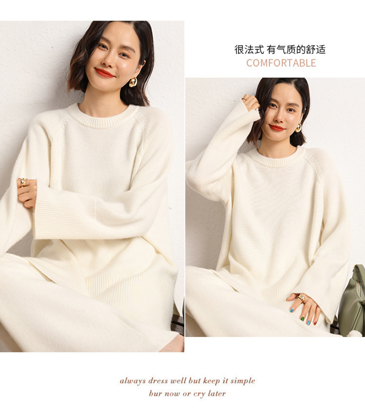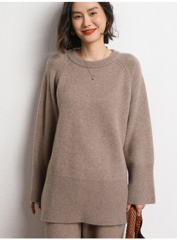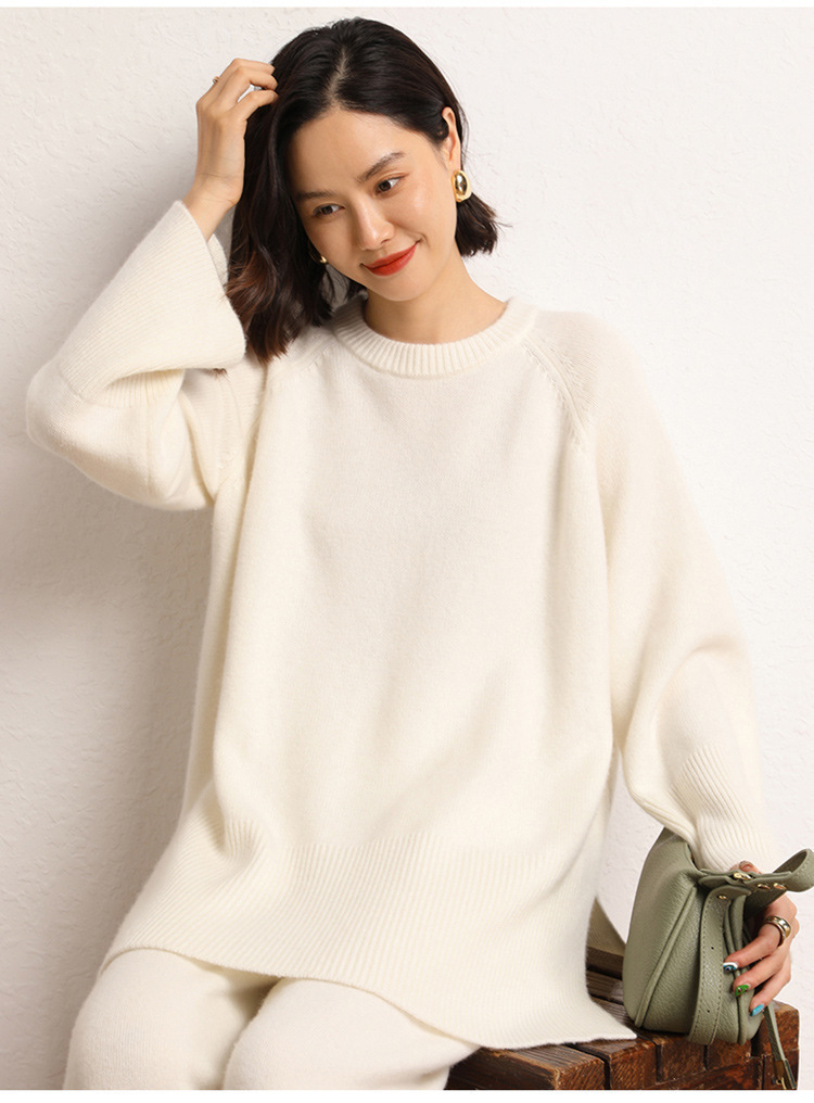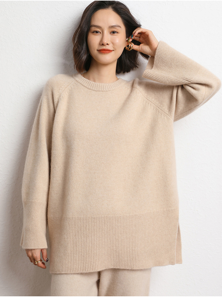 여성을위한 크로스 보더 게으른 스타일 라운드 넥 느슨한 대형 스웨터 2025 가을, 겨울 여성을위한 새로운 캐주얼 밑단 슬릿 스웨터스토어 가기