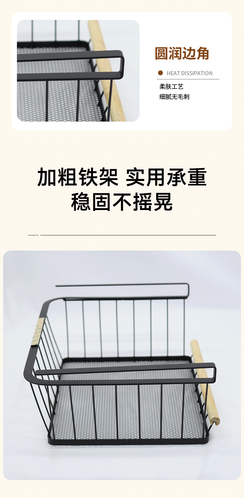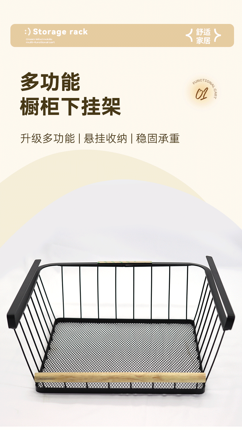 주방 수납 걸이형 수납 선반 고무나무 손잡이 걸이 바구니 캐비닛 아래에 펀치 없는 걸이 바구니 걸이스토어 가기