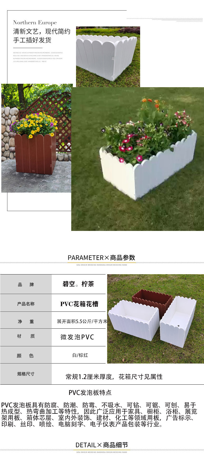 부식 방지 및 방습 PVC 꽃 상자 꽃 홀더 화분 직사각형 간단한 실내 야외 흰색 회색 목재 플라스틱 꽃 라이너
