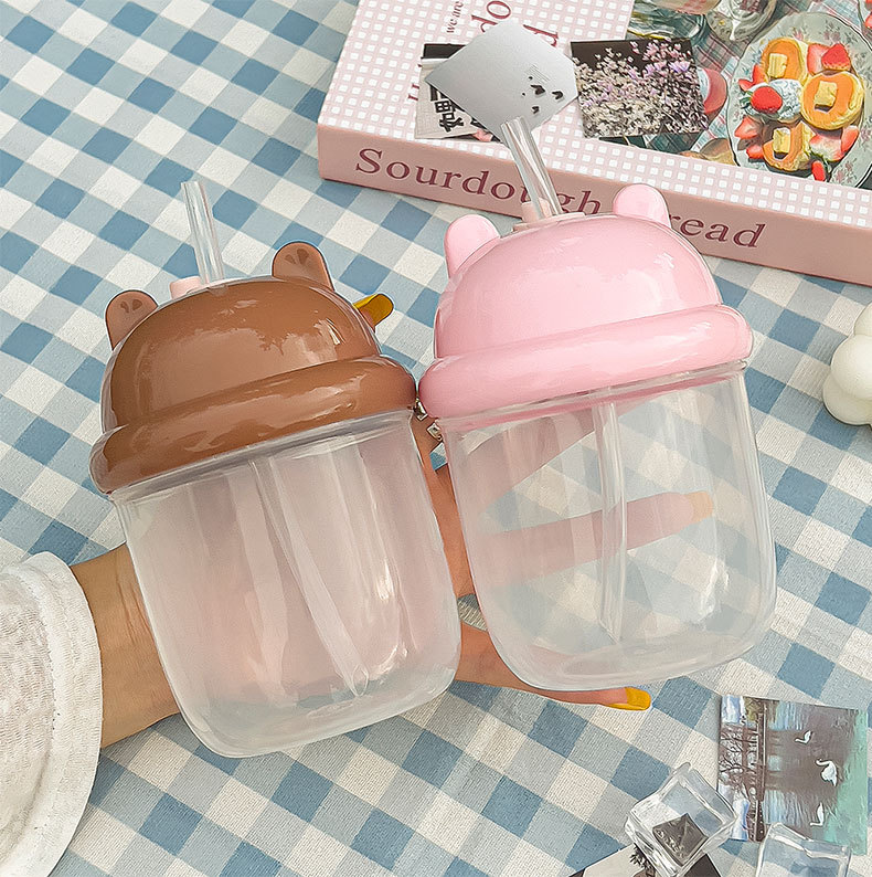 국경 간 밀짚 컵, 고급스러운 미니 물컵, 어린이 배 컵, 학생 귀여운 대용량 우유 컵, 톤 톤 컵