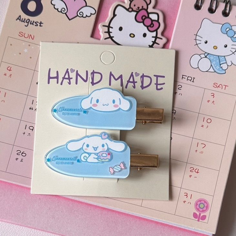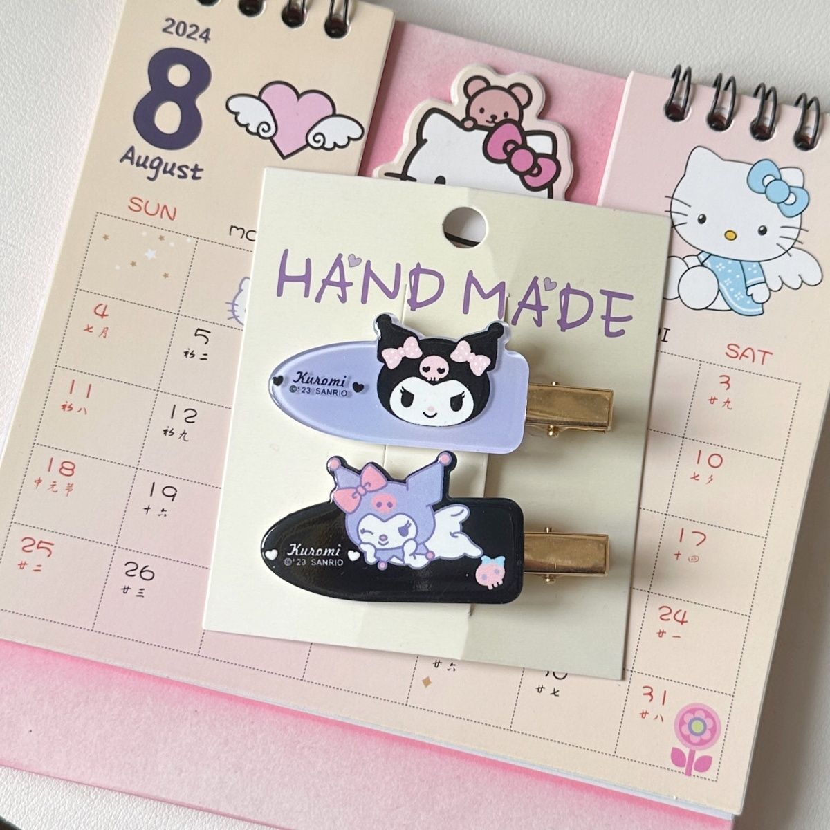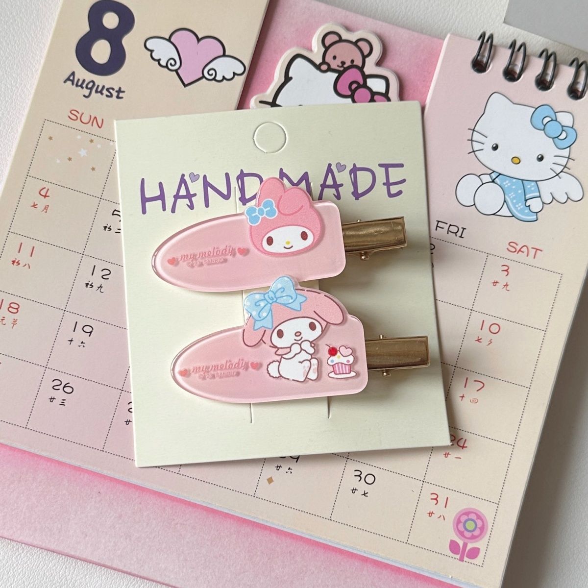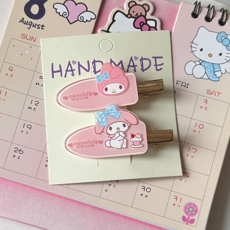 산리오 심리스 클립 머리핀 귀엽고 달콤한 소녀 하트 만화 앞머리 클립 머리 장식 카드 여성용 덕빌 클립스토어 가기
