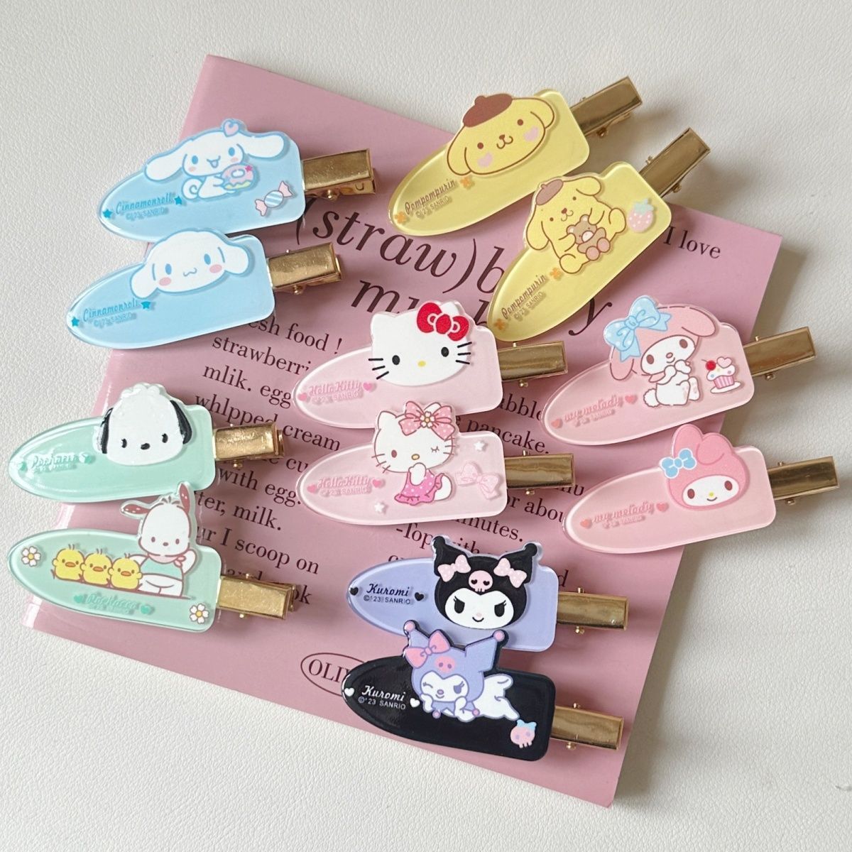산리오 심리스 클립 머리핀 귀엽고 달콤한 소녀 하트 만화 앞머리 클립 머리 장식 카드 여성용 덕빌 클립
