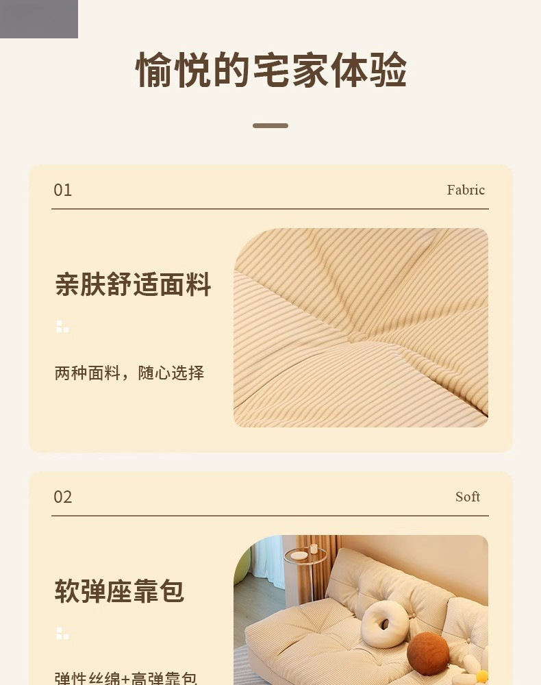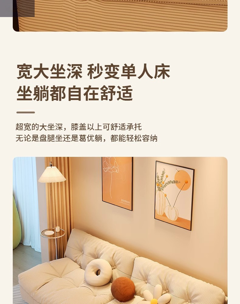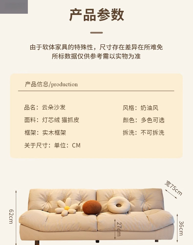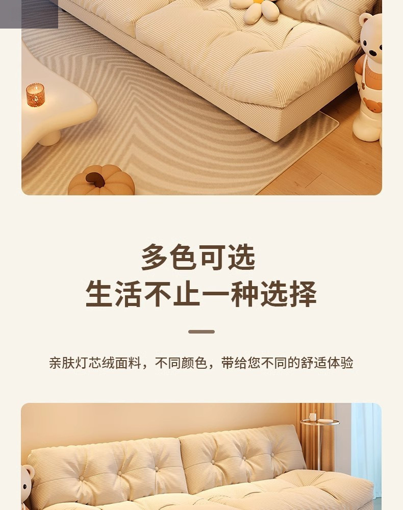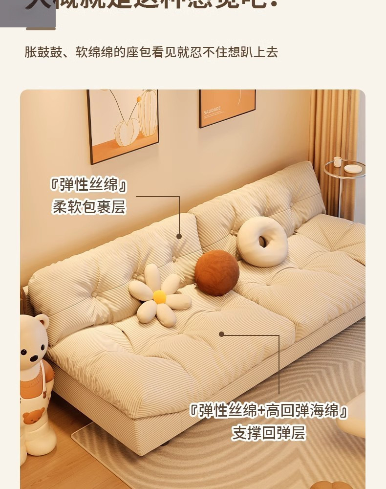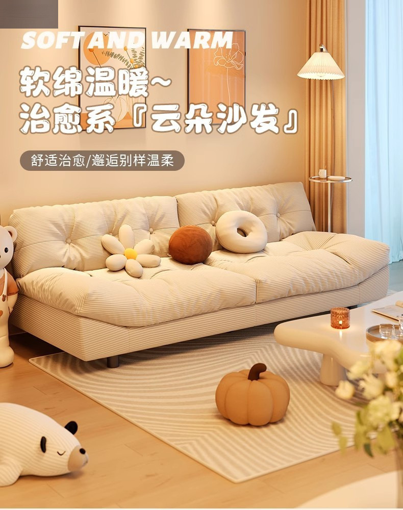 클라우드 소파 작은 크기 게으른 소파 스트레이트 인라인 2인용 3인용 홈 거실 침실 크림 스타일 소파 베드