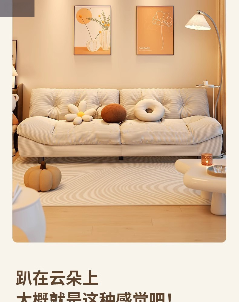 클라우드 소파 작은 크기 게으른 소파 스트레이트 인라인 2인용 3인용 홈 거실 침실 크림 스타일 소파 베드스토어 가기