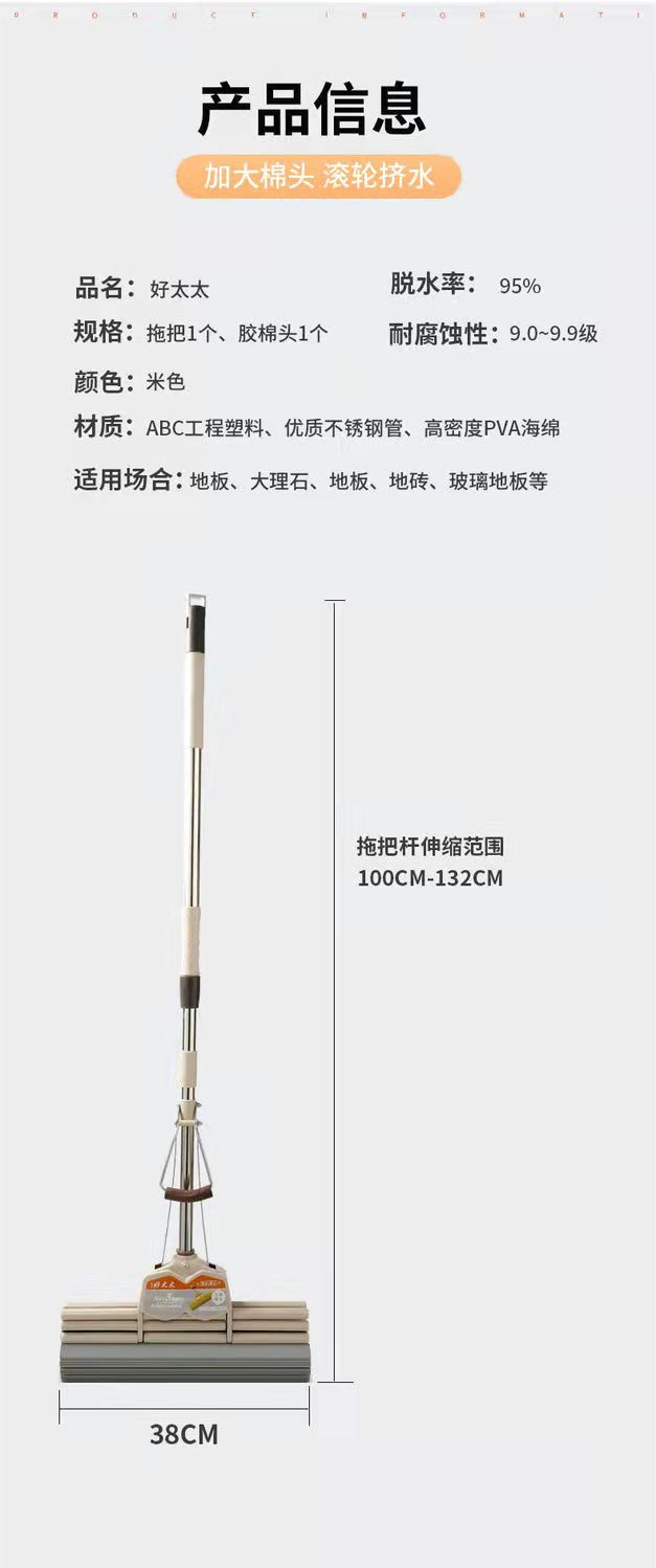 스펀지 물걸레 공식 스테인레스 스틸 핸즈프리 롤러 스폰지 걸레 흡수성 걸레