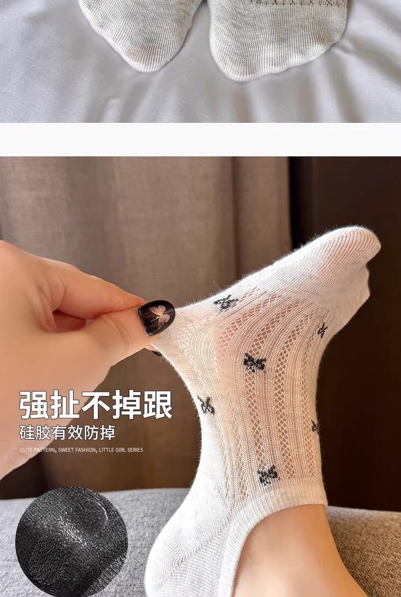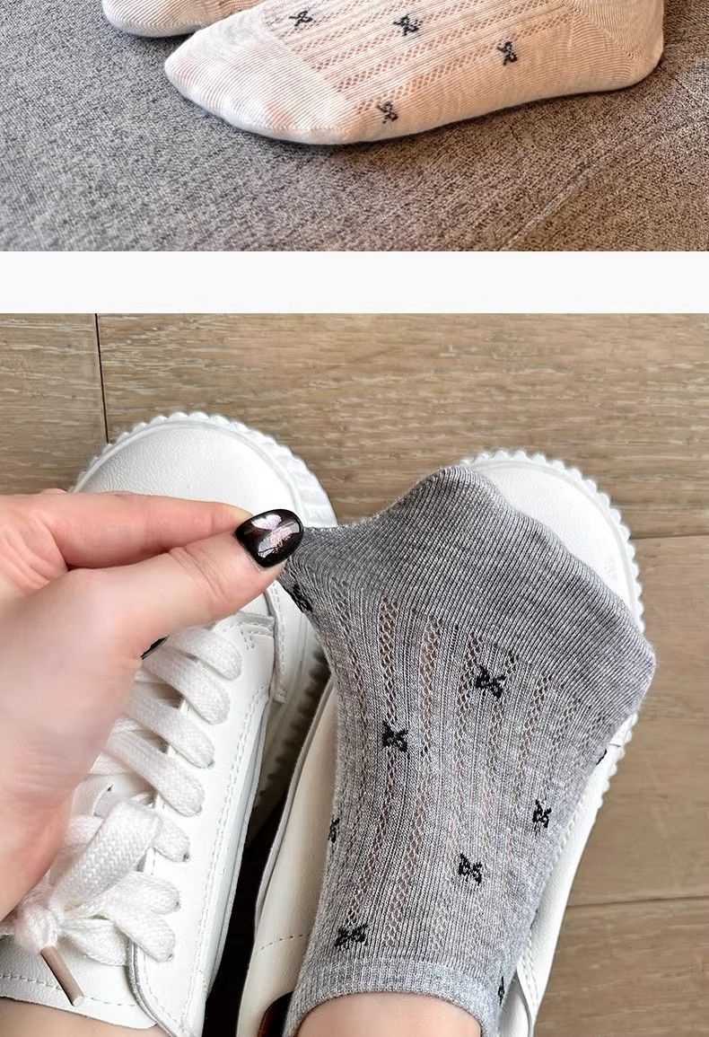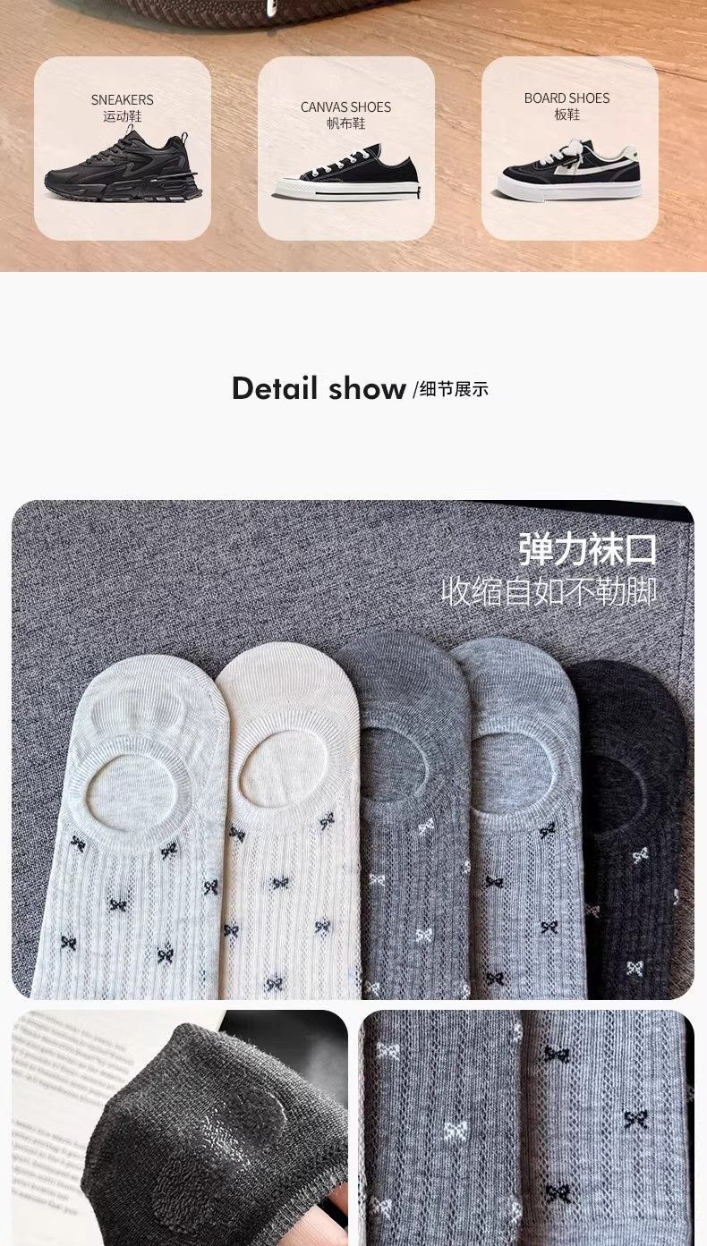 보트 양말 여성용 보트 양말 미끄럼 방지 2025 새로운 통기성 나비 매듭 얕은 입 보이지 않는 양말 여름 얇은 양말