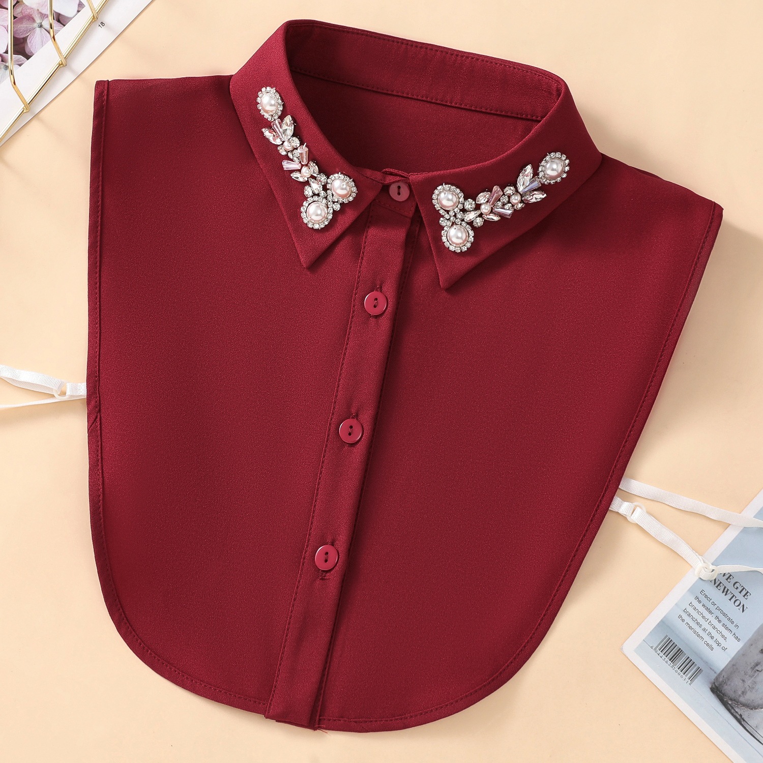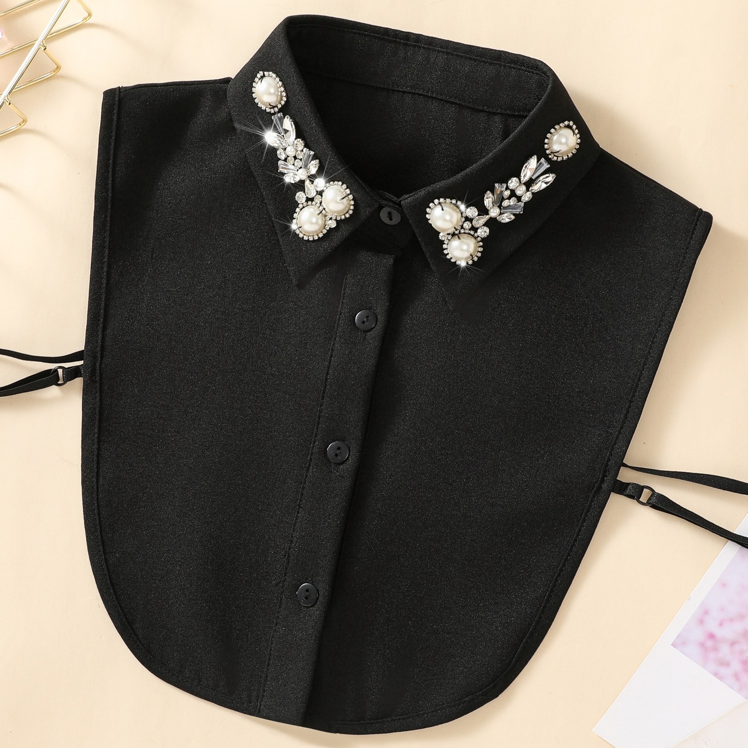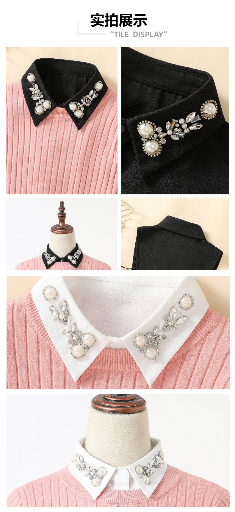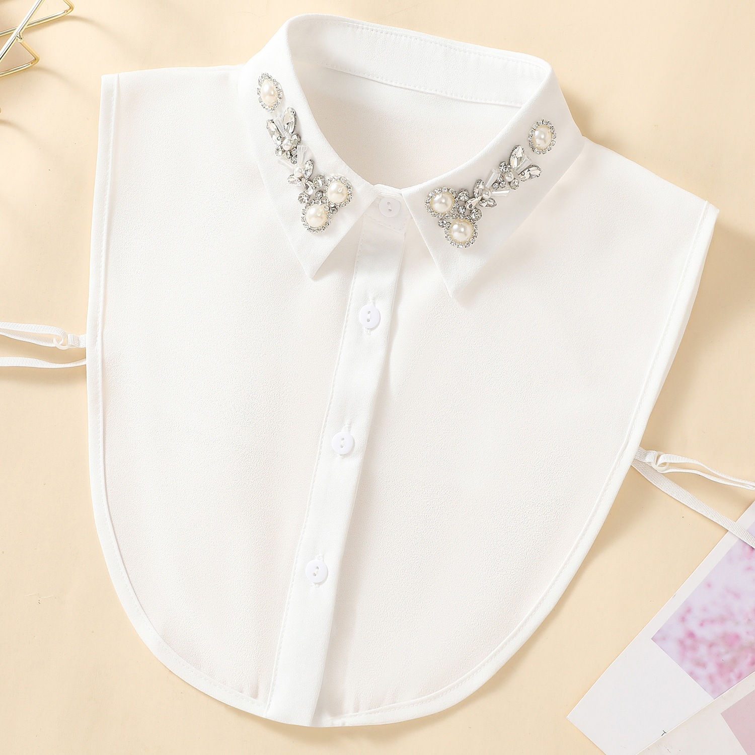 가을 겨울 한국식 셔츠 가짜 칼라 여성용 구슬 진주 다용도 가짜 칼라 여성용 쉬폰 셔츠 칼라