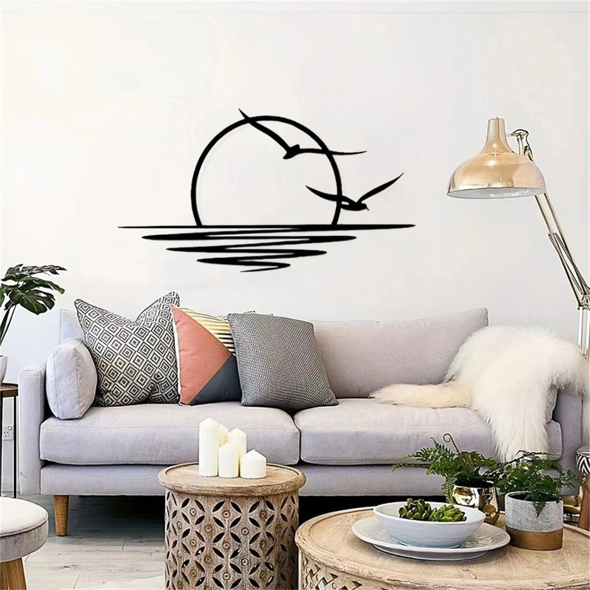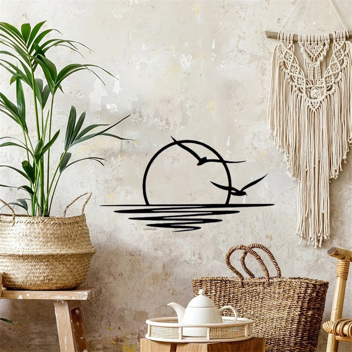 국경 간 인기 금속 철 벽 장식 크리 에이 티브 홈 거실 문 프레임 장식 해질녘 갈매기 공예품스토어 가기