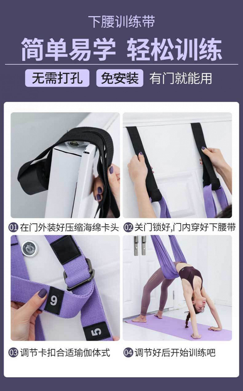 에어리얼 요가 로프 스트레칭 벨트 홈 하체 트레이닝 일자 말 오픈 엉덩이 스트레치 벨트 반전 로프스토어 가기