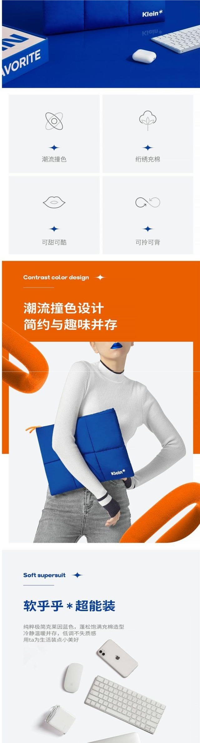 Tou 오리지널 클라인 블루 맥북 화웨이 노트북 가방 13/ 14inch 태블릿 보관 라이너 가방스토어 가기