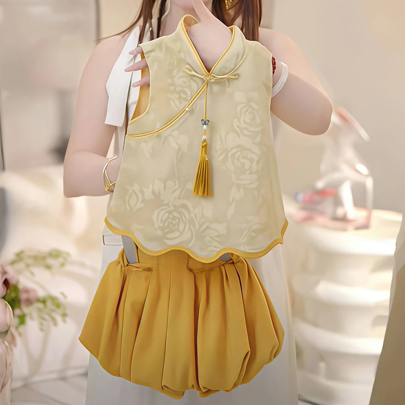 Ningli 소녀의 중국 스타일 정장 여름 새 스타일 아기 소녀의 멋진 새로운 중국 스타일 여름 정장 어린이 Hanfu 투피스 세트