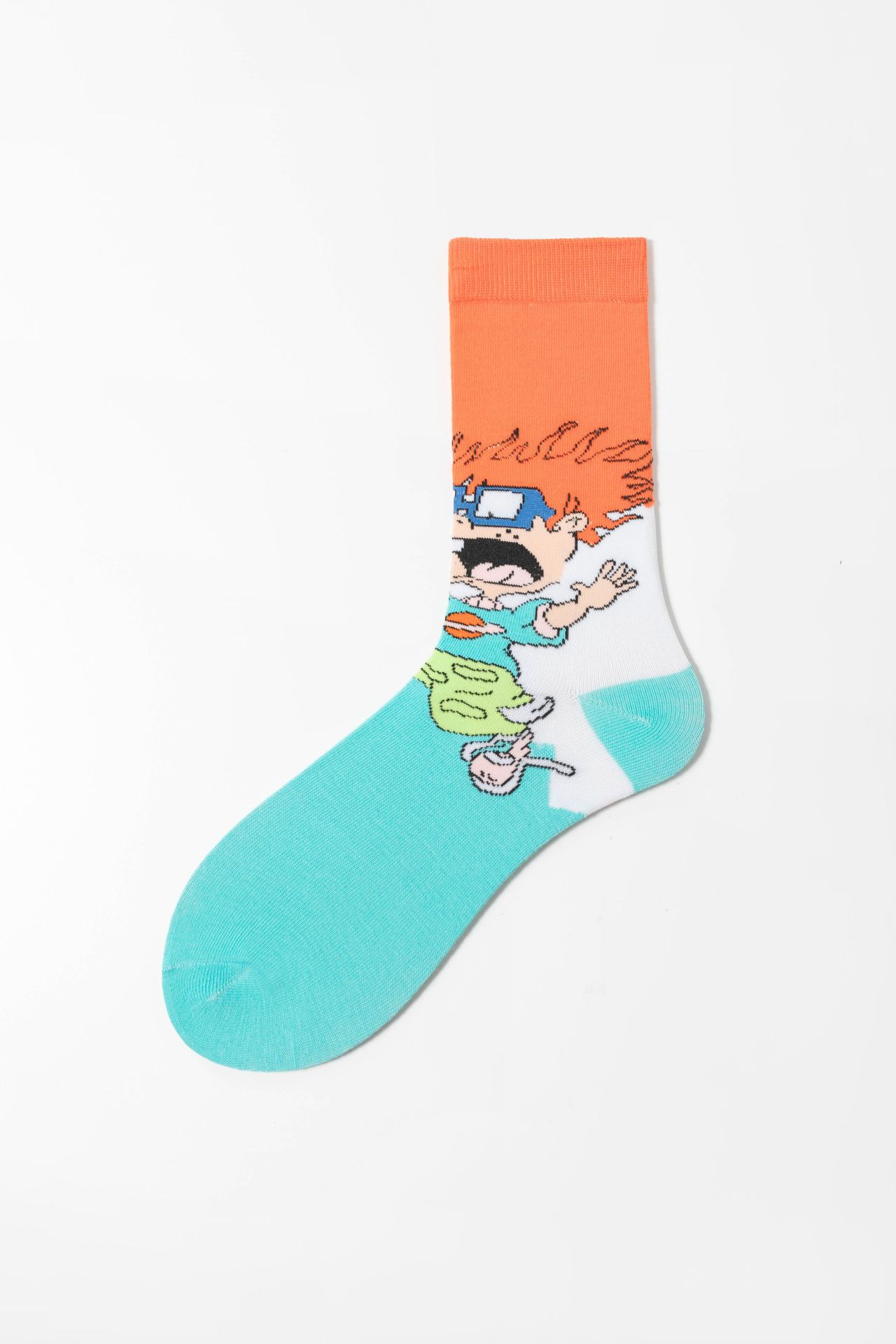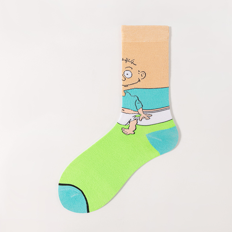 맞춤형 양말 대외 무역 유행 양말 남성 유럽과 미국의 유행 캐주얼 창조적 인 로고 만화 패턴 중간 길이 양말 제조 업체스토어 가기