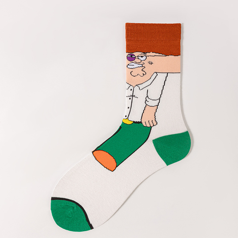 맞춤형 양말 대외 무역 유행 양말 남성 유럽과 미국의 유행 캐주얼 창조적 인 로고 만화 패턴 중간 길이 양말 제조 업체