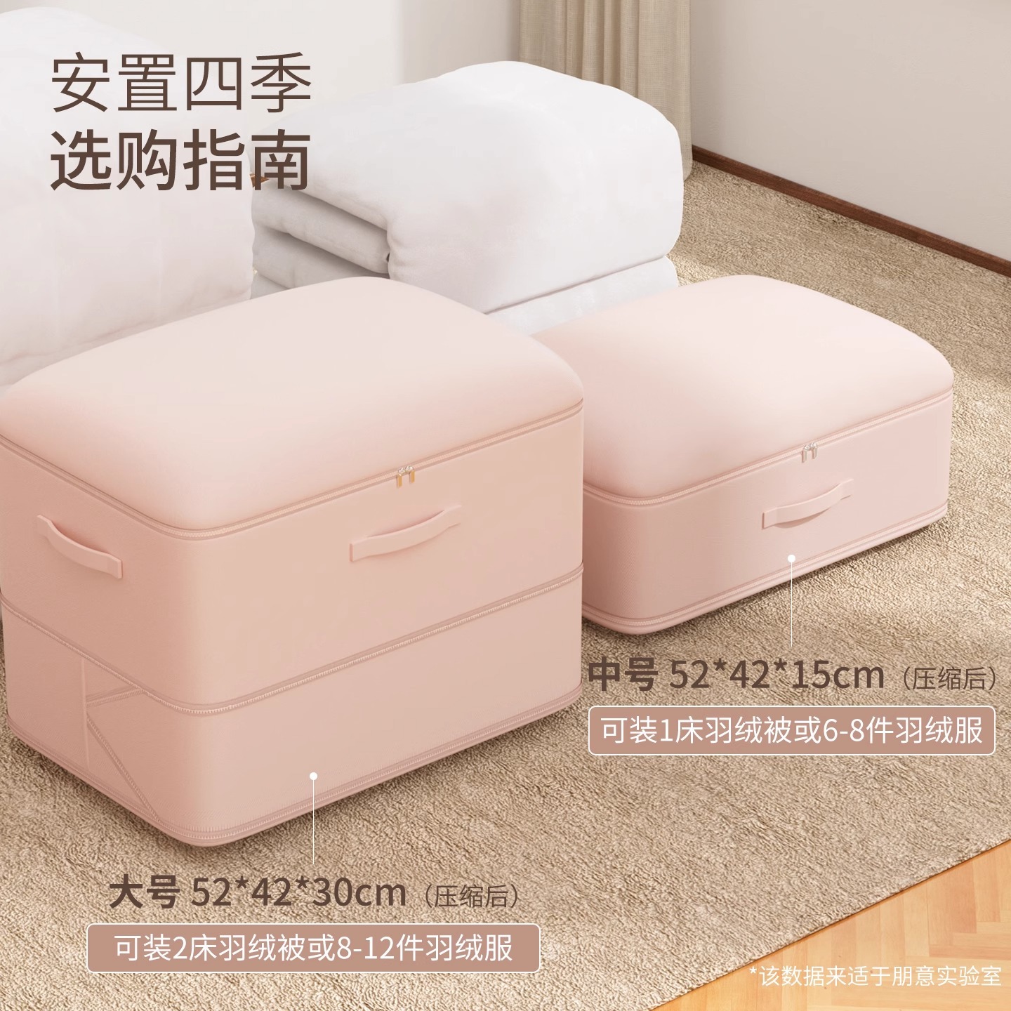 • 살구핑크 L&대형[52*42*60cm] 침대 2개 수용 가능 3kg 이불, 다운을 보호하고 푹신함을 유지하기 위해 압축하지 않음