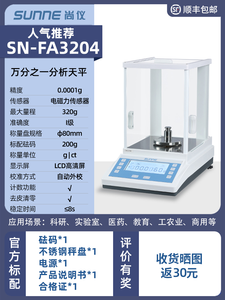 Shangyi 전자 분석 저울 0.0001g 10,000번째 실험실 10,000번째 저울 0.1mg스토어 가기