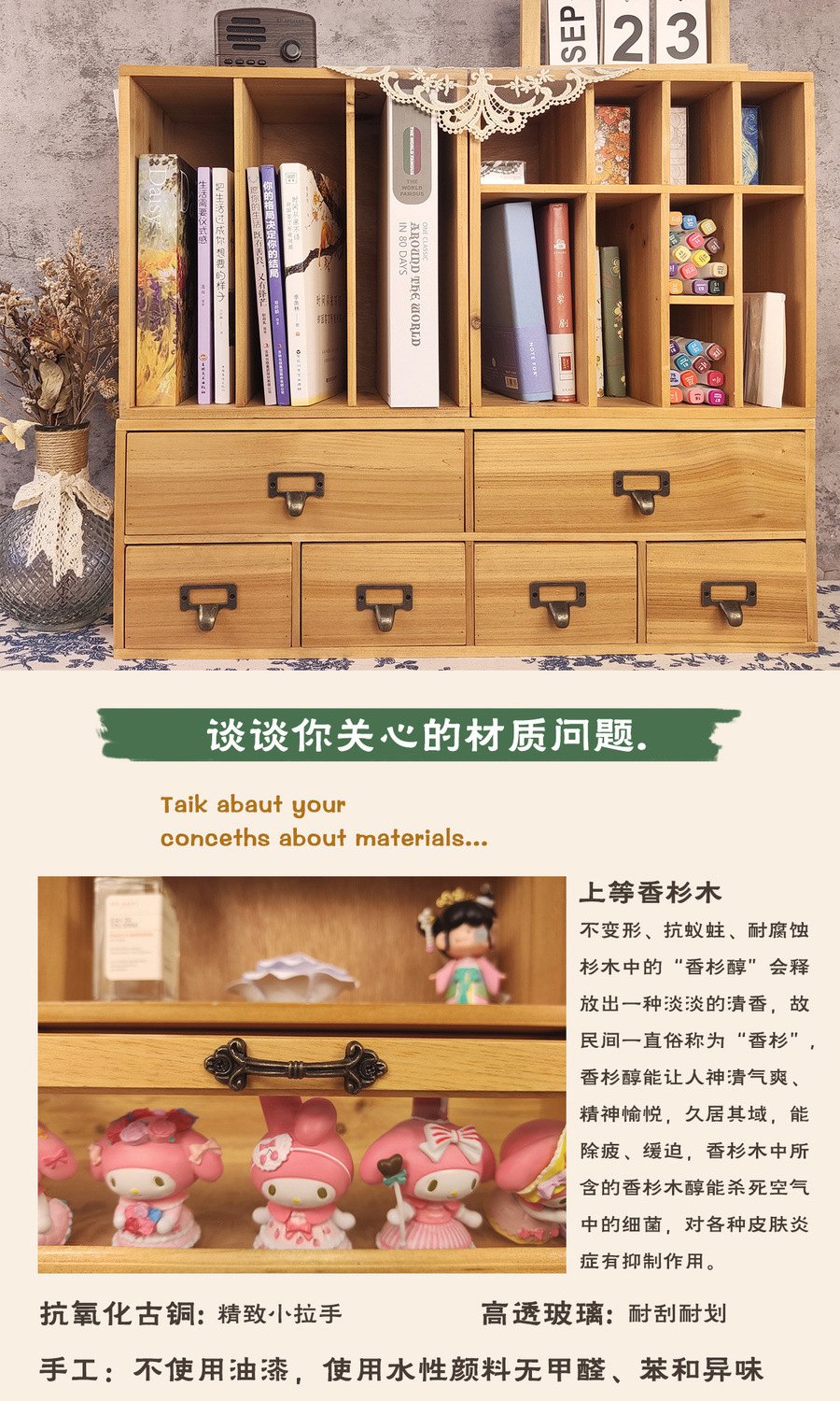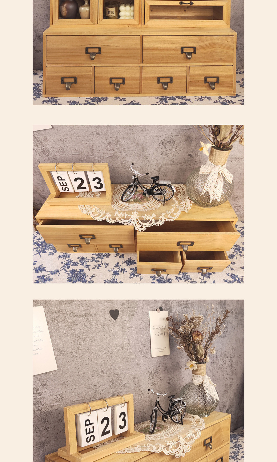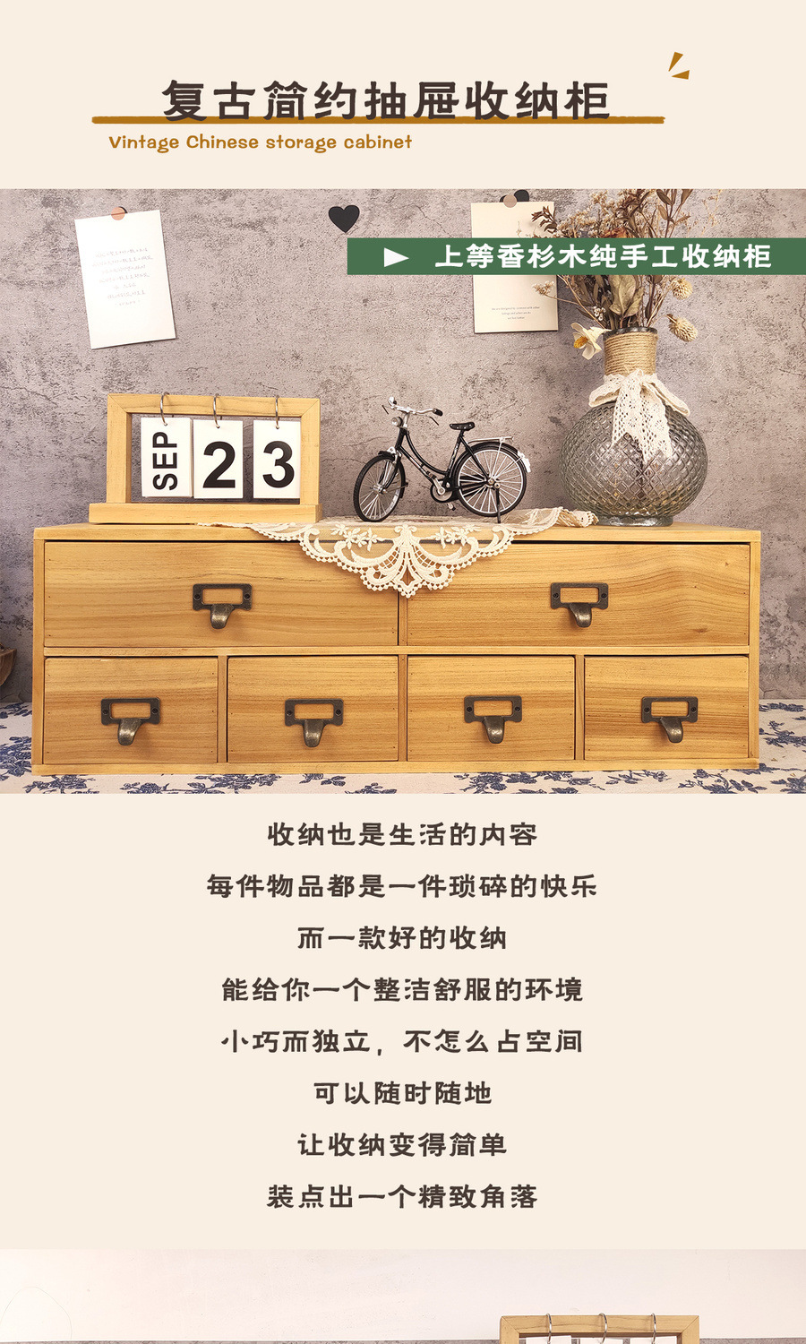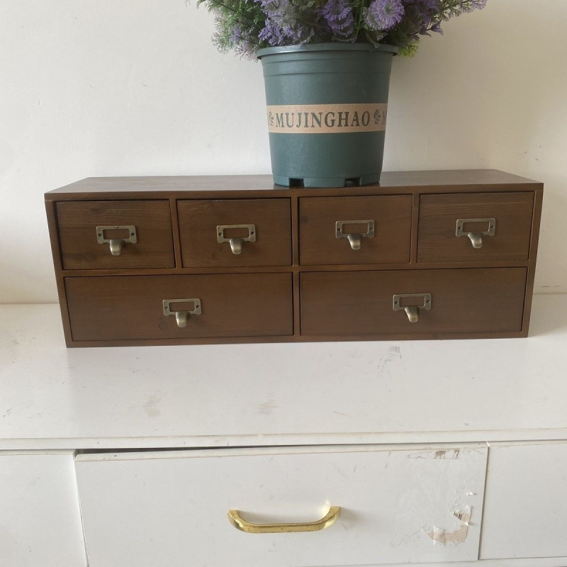 레트로 향기로운 전나무 통나무 데스크탑 스토리지 캐비닛 홈 장식 장식품 방진 테이블 서랍 스토리지 캐비닛