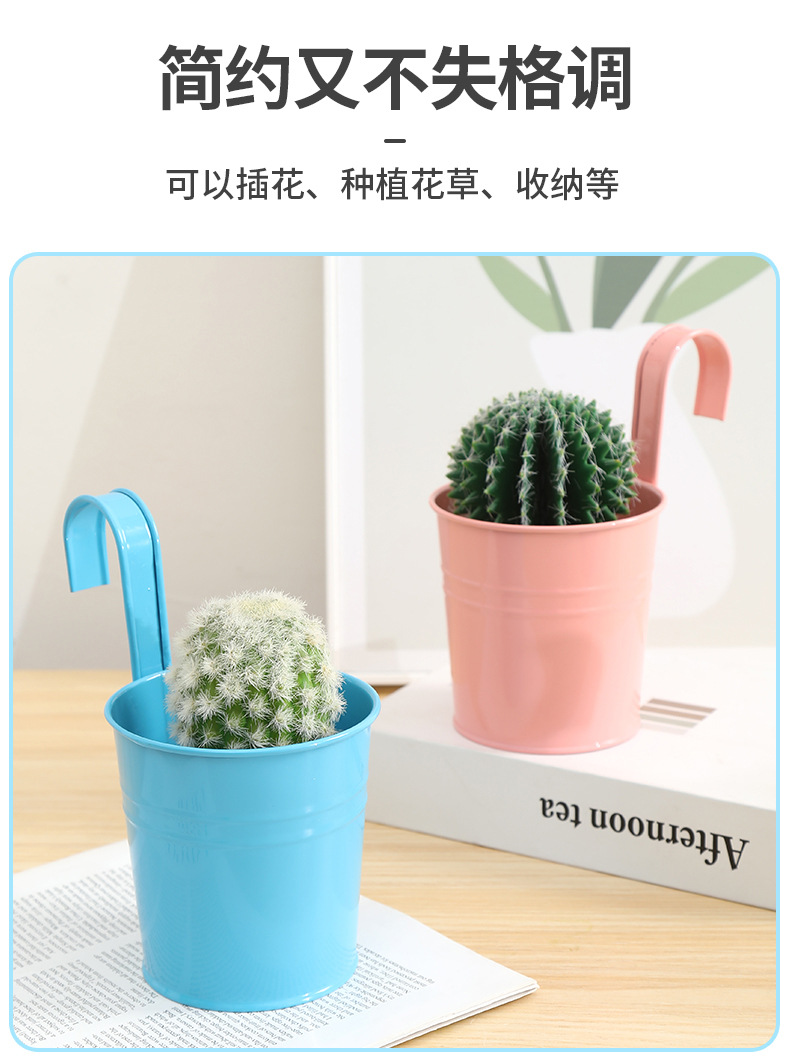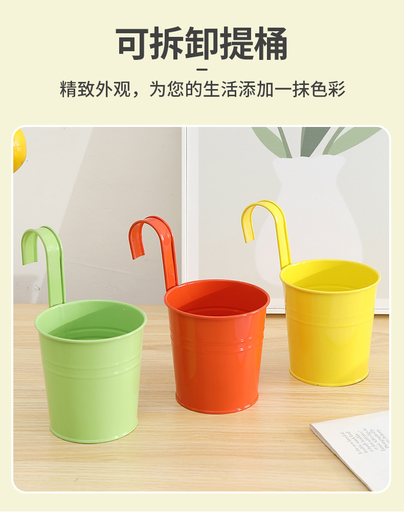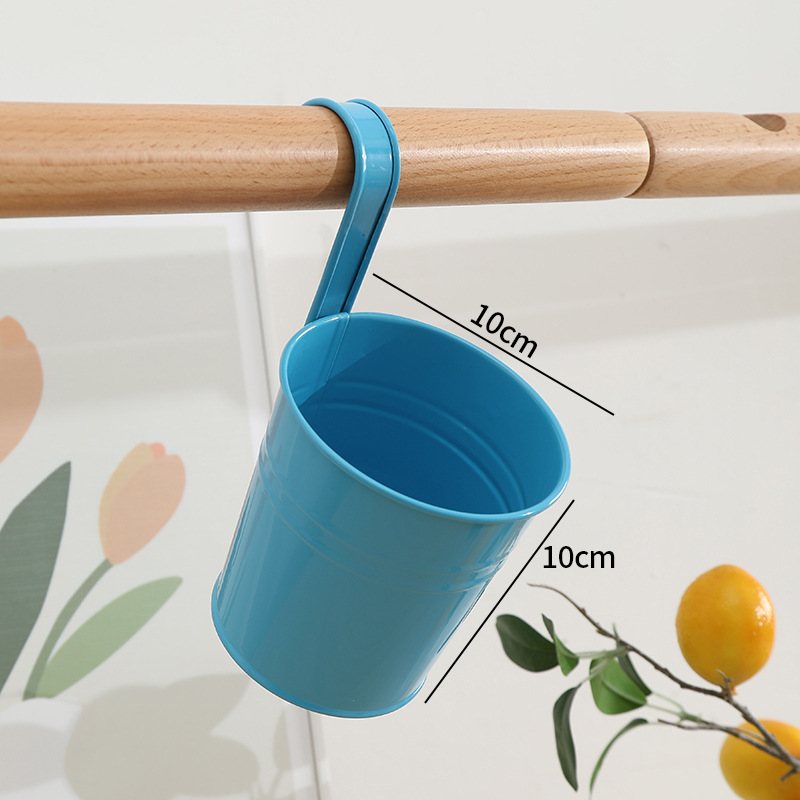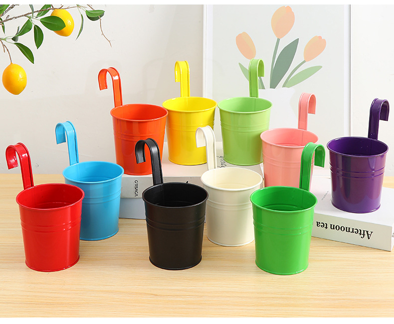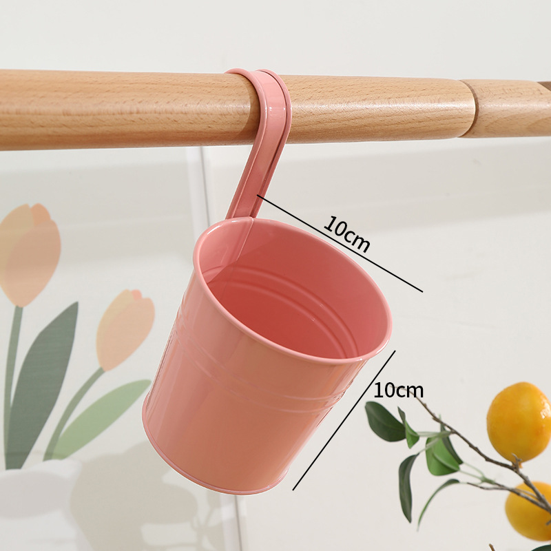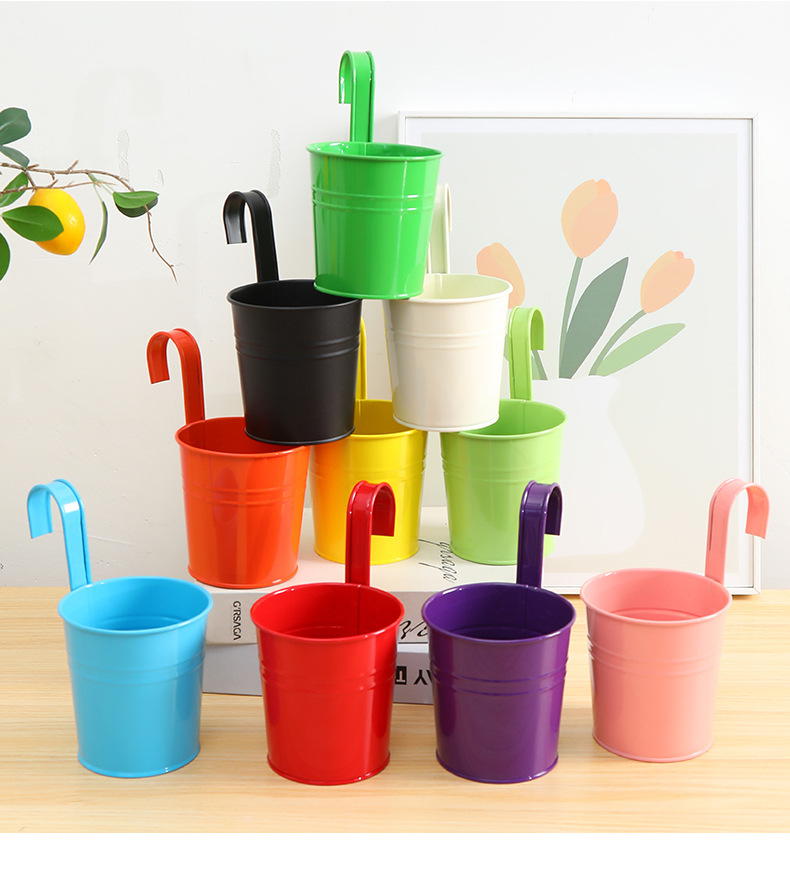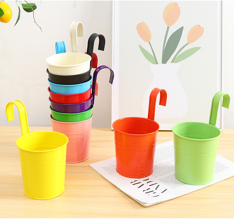 발코니에 걸 수 있는 화분, 캔디 컬러의 걸이형 화분, 탈부착 가능한 후크 걸이형 통, 다육식물, 철제 화분 장식