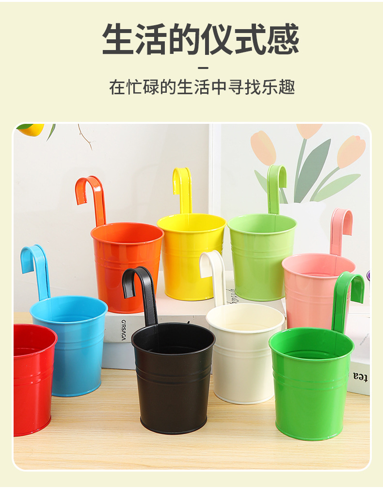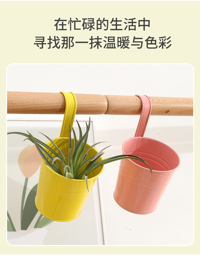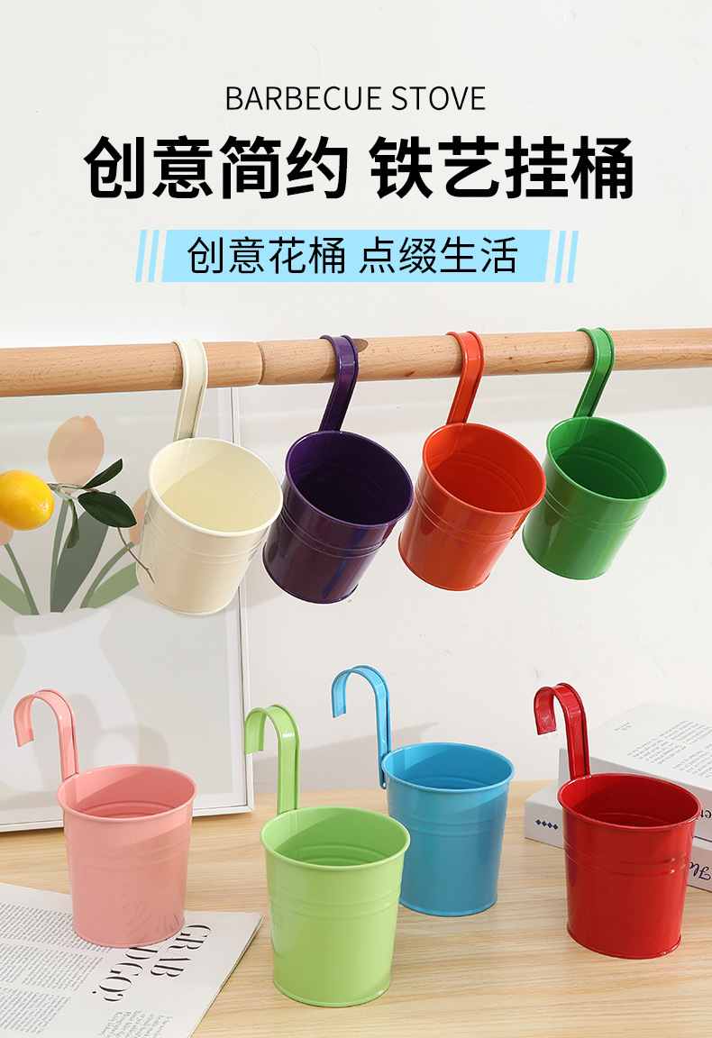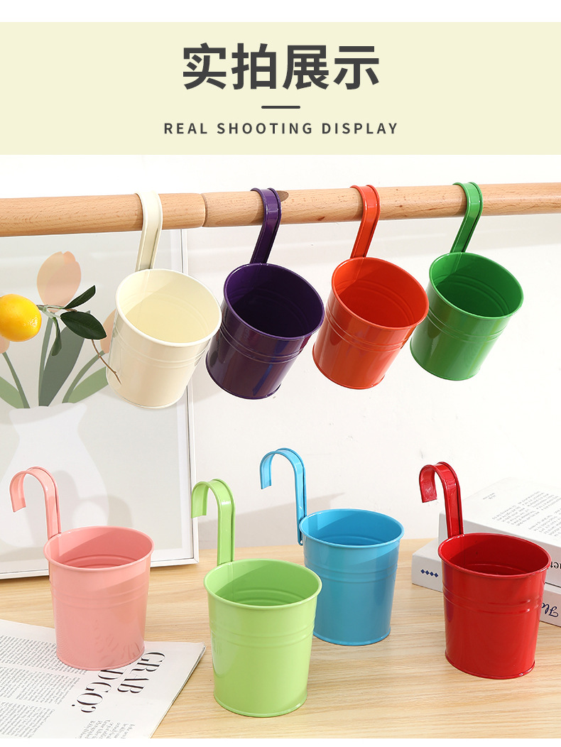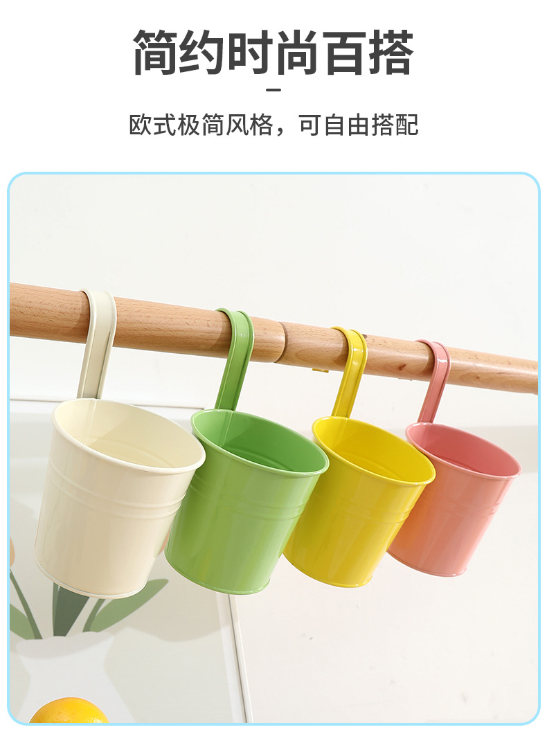 발코니에 걸 수 있는 화분, 캔디 컬러의 걸이형 화분, 탈부착 가능한 후크 걸이형 통, 다육식물, 철제 화분 장식