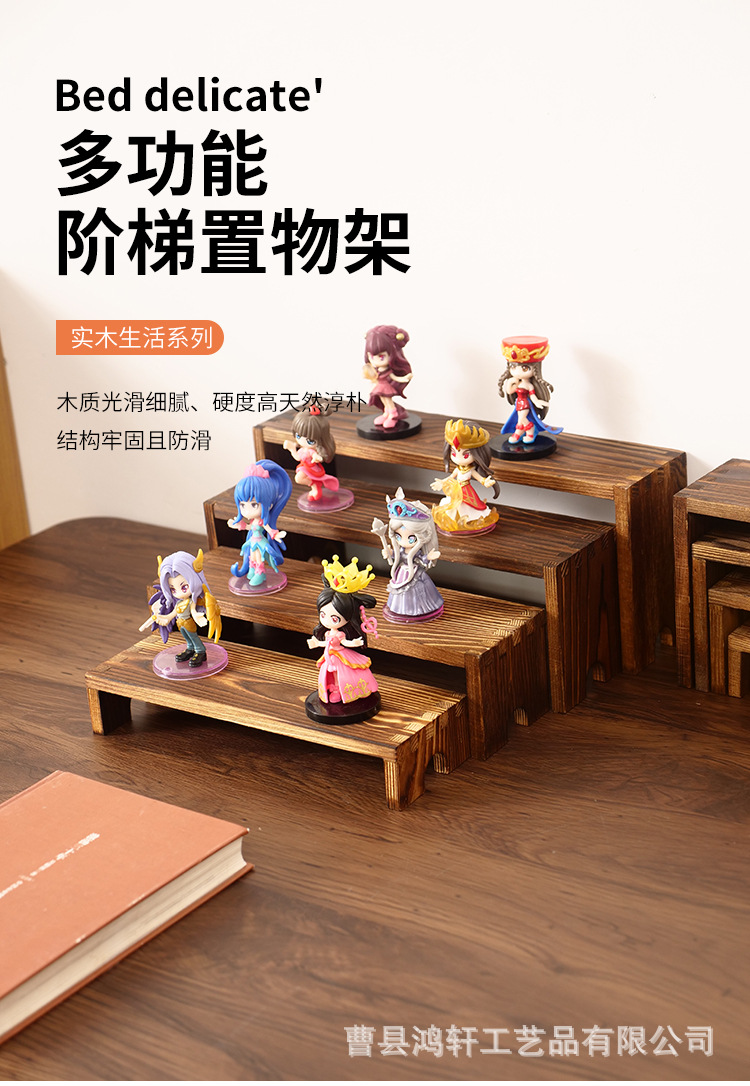 단단한 나무 손으로 만든 보관 랙, 계단식 팔찌 및 불교 구슬 디스플레이 랙, 가정용 다육 화분 보관 랙스토어 가기